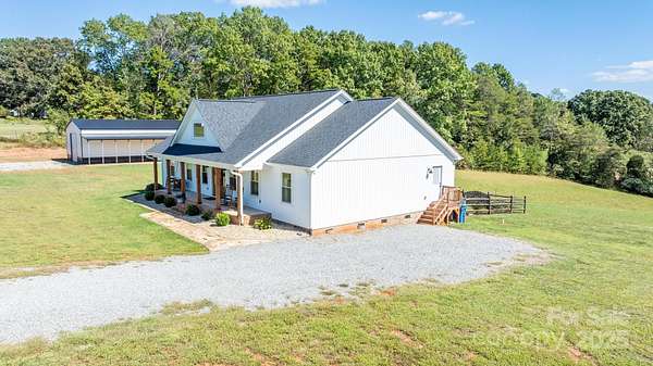 With a full price offer, the home can be purchased furnished (excluding the refrigerator and the motorcycle in the shop). One-story home sits on 5.0 acres/NO HOA, and offers 4 bedrooms, 2.5 baths, and numerous upgrades throughout. The open floor plan features a 12-foot vaulted ceiling in the main living area, LVP flooring, and a shiplap fireplace that extends to the ceiling. The kitchen is equipped with upgraded quartz countertops, easy-close cabinets, a white porcelain farm sink, a shiplap hood, and a large pantry. Bedrooms include plush carpet. Exterior details include a double-stained front door, 6 wood-grained stained porch posts, and a covered front porch. There is room for a swimming pool. HVAC unit replaced in 2024 under warranty. 2,946 sq. ft. insulated shop with 12x12 and 10x10 garage doors, side entry, 12x70 lean-to, shop has separate Duke Energy meter (20 amp for air compressor). 8x10 storage shed and a treehouse in the wooded area. No homes will be built across the street; the property faces a wedding venue, ensuring long-term privacy. The woods to the left of the shop are included with the sale of the property. The seller owns the dirt road between the shop and the woods. The property line ends at the back of the woods when going down the dirt road. MAILBOX NUMBER 6601 at the beginning of the dirt road belongs to the neighbor behind the property. There is a recorded easement that allows the neighbor behind the property non-exclusive Ingress and Egress of the dirt road. PLEASE ONLY WALK DOWN THE DIRT ROAD. Do not go beyond the back of the woods when going down the dirt road. See directional sign at the end of the dirt road marking the property line.