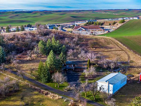 Rarely available and truly special, this exceptional 4.96 acre property offers peaceful country living right at the edge of Moscow city limits. Tucked away in a hidden, private setting just behind Walmart & the Same-Day Surgery Center, you'll enjoy unexpected privacy & gorgeous views with city conveniences moments away. Built by Marshall Comstock in 1988, this 2,688 sqft, well-maintained home features 5 bedrooms & 3 updated bathrooms. Nearly all windows have been replaced, and all ceiling lights have been upgraded to new LED fixtures. The home offers both a living room & family room and is in great overall condition. Features include no city water bill, with a strong well with registered water rights, excellent land for livestock & gardening, lower property taxes (County vs. City), and natural gas to fuel the forced-air furnace. Avg Avista gas & electric costs are an impressively low $114 per month. There is a spacious 26' x 60' shop with 220V power & a wood stove, and no CC&Rs offer flexibility rarely found this close to town. More interior photos to come - sellers unexpectedly found their ideal retirement home & are in the process of downsizing & staging, yet must list immediately per contract terms; the home is well cared for. 40 acres behind the home cannot be developed as it is in a land trust. Enjoy the country with the full convenience of the City of Moscow at your doorstep.