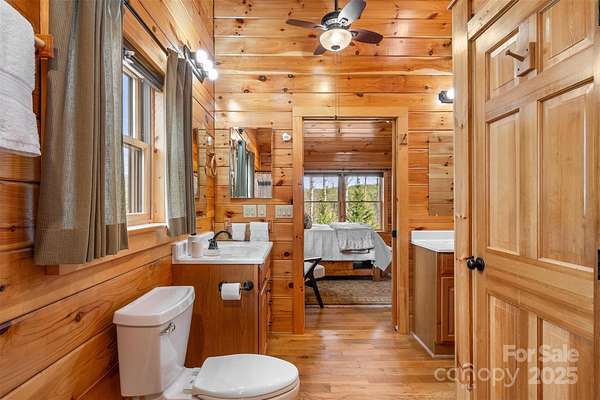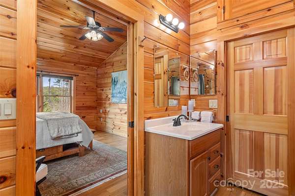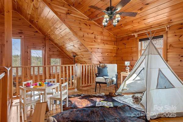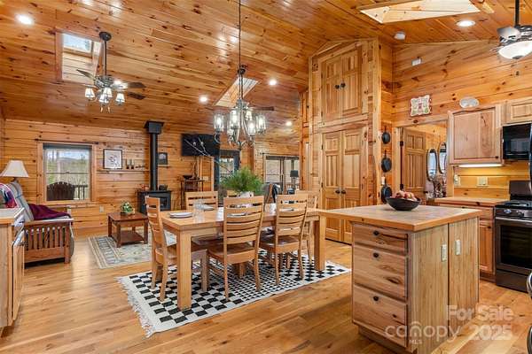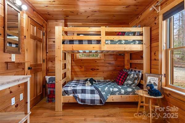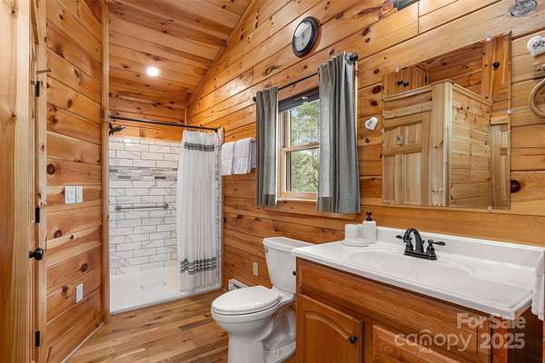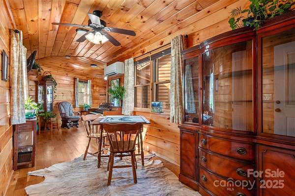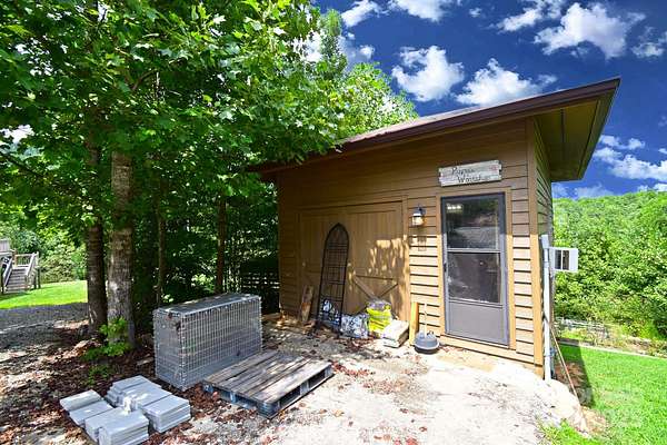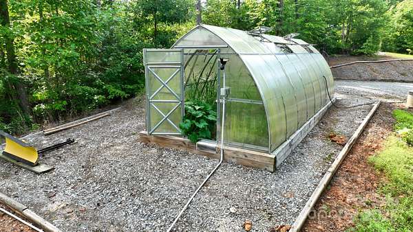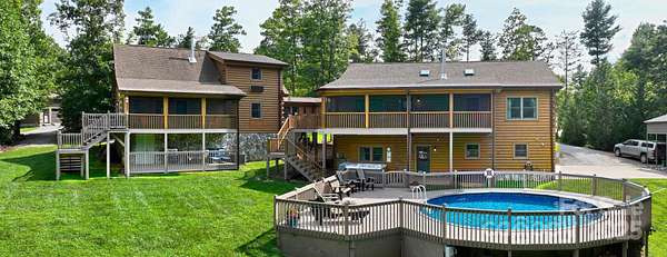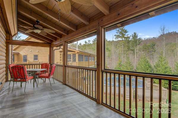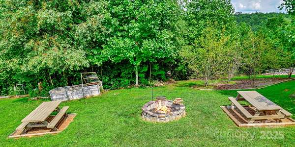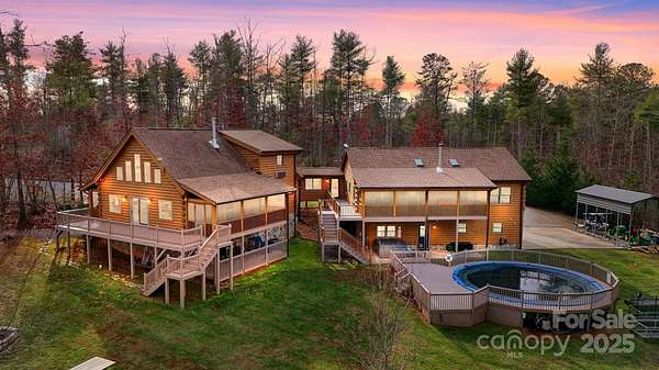 Multigenerational mountain farm steps from being off grid! 2 log homes w/separate utilities, a bunk house & 2 camper sites! Start making money immediately or set up the perfect retreat! This well thought out homestead features the main home with 4 bedrooms, 3 baths & a sunroom/breezeway to connect to 2nd log home. 2nd home has 2 bedrooms, 2 baths & basement garage. Walk out basement has a 3rd bathroom attached to what could be transitioned to a self contained 3rd unit. Pool and hot tub outside the walkout basement. Both homes feature screened in back porches & wood stoves. There is a bunkhouse with bathroom, workshop with 8th bathroom on this property, chicken coop with run, greenhouse, raised beds, compost bins & stunning stone firepit. Creek borders the property. 2 covered camper areas are wired & plumbed. Solar panels & generators are in place to assist with all backup needs. Neighborhood allows direct access to Pisgah National Forest. Please note HOA dues are for road mntnce only!