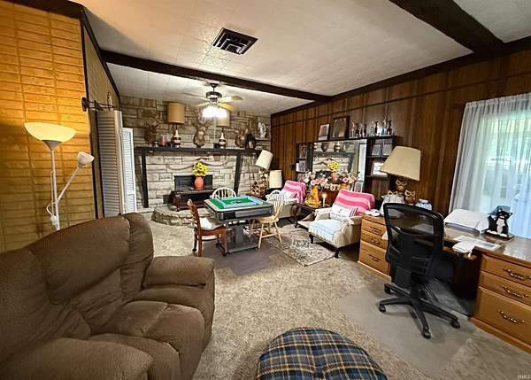 This spacious one-level home offers the perfect blend of comfort, functionality, and peaceful surroundings. Featuring three bedrooms and one-and-a-half baths, the home boasts a large living room, a cozy family room with a fireplace, and a dedicated office with a separate entrance--ideal for remote work or creative space. The open-concept kitchen and dining area make entertaining easy and enjoyable. Outside, you'll find a large carport with an attached workshop area, plus a separate pole building--perfect for hobbies, storage, or extra workspace. Relax in the gorgeous three season room overlooking beautifully landscaped grounds with mature shade trees that create an outdoor retreat. Located on the edge of town, this property offers a sense of privacy while still being conveniently close to amenities. A unique opportunity with plenty of space both inside and out--don't miss your chance to own this home!