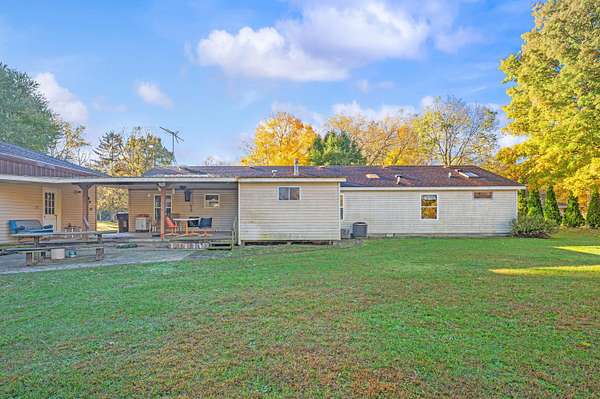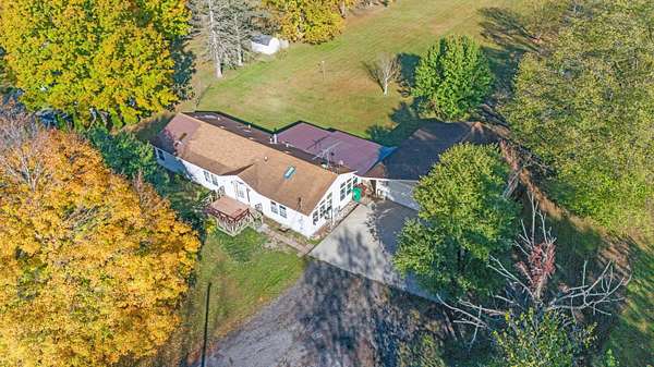This Howard Township 5-acre parcel is a rare opportunity. The home's solid layout and generous spaces offer incredible potential to build equity and personalize every detail to your taste. The main level features a spacious primary bedroom with an en suite bath, skylight, and large windows. A bright kitchen opens to the family room, also graced with a skylight, offering abundant natural light. But what truly sets this property apart is outside: a 32x30 detached garage workshop that's fully equipped and ready for serious projects or hobbies. With its own bathroom, built-in air compressor, heated interior, electric for welding, and a generator, this workshop is ideal for tradespeople, mechanics, artists, or anyone needing a functional and flexible space. Additional outbuildings include a second workshop and a large storage shed-adding even more versatility and value. If you're seeking land, privacy, and a setup that supports both living and working, this property is full of promise.
