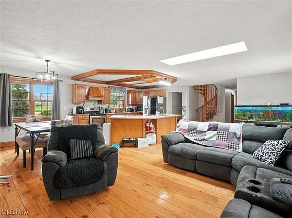 Charming Country Retreat with Modern Amenities Welcome to your dream home! This beautifully maintained 4-bedroom, 3-bath residence offers the perfect blend of comfort and style, situated on a picturesque 2.55-acre lot with a serene creek in the back. Step inside to discover 4,138 square feet of inviting living space, featuring a spacious layout with a large, finished walkout basement complete with a wet bar, 2 (possible 3-4) bedrooms and a full bath. The turret room, adorned with a spiral staircase, adds a unique touch and can serve as a cozy reading nook or home office. Full bath on the main floor is renovated with a new walk-in shower equipped with composite stone shower tile. Experience the perfect blend of elegance and functionality in this stunning open floor plan living and dining room. The space is bathed in natural light, showcasing a warm, inviting atmosphere. The seamless flow between the living and dining areas makes it ideal for entertaining. Step through the living room's large sliding doors onto a spacious deck, perfect for outdoor dining or relaxing while enjoying your morning coffee. Enjoy peace of mind with a brand-new septic system featuring double holding tanks (installed in 2016), a new roof with 40-year shingles, and updated skylights, gutters with leaf guards, and flashing (all done in 2022). Your convenience is accented by three driveways-one asphalt and two gravel. Relax in the expansive master bedroom suite that boasts with tray ceilings, a skylight, private deck, walk-in closet and an ensuite bath featuring a luxurious jacuzzi tub. Additional highlights include gas heating, central air conditioning, and public water. Located close to Route 90 and 11, this home balances a tranquil country setting with easy access to local amenities. Fresh paint throughout the home and new carpet on the main floor installed in 2025 along with new light fixtures.