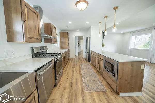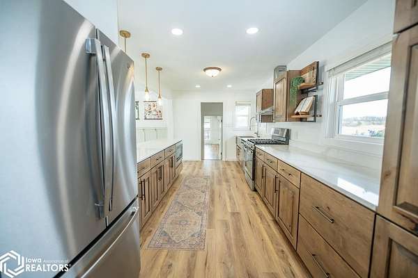Modern comfort meets the freedom of rural living. Enjoy the peace and beauty of country living with this impressive 4BR/3BA home on 3.14 scenic acres, just minutes from Fairfield and situated on a paved road. Offering 2,241 sq ft, this fully remodeled home features an open floor plan, abundant natural light, and stylish modern updates throughout, including stainless steel appliances. The finished basement provides additional living space plus a non-conforming bedroom-perfect for guests, entertaining, or a home office. Step outside to your private retreat featuring a pool with nearly 400 sq ft of surrounding concrete, a ????? scenic pond, and plenty of space to relax and unwind. The property also includes a 42x45 machine shed ideal for equipment or hobbies, along with a 960 sq ft detached garage for vehicles and storage. Combining wide-open space, functional outbuildings, and thoughtful upgrades, this property delivers the perfect blend of rural charm and everyday convenience. A rare opportunity to enjoy country living without sacrificing modern amenities.