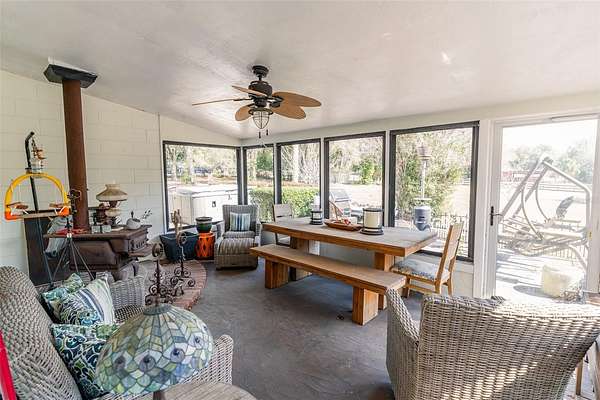 Enjoy quiet mornings or evenings relaxing on the screened in back porch that overlooks this incredible setting. Beautiful Recently renovated kitchen that flows through to the dining/ living room area. The third bedroom is currently used as an office off the laundry room area. Would also make a great craft room! Bahama shutters and blinds through out as well as LVP flooring giving this home a fresh and inviting style.