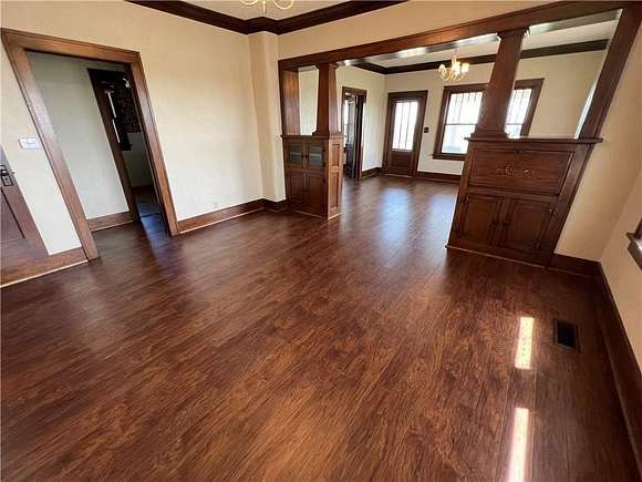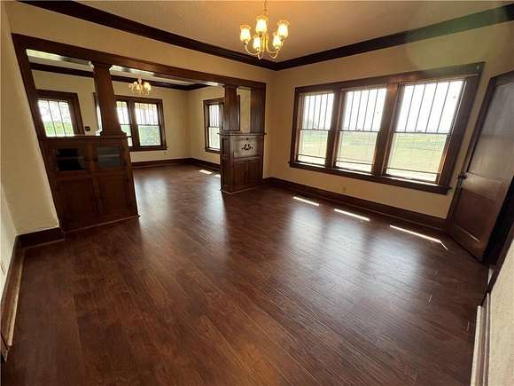 The farmhouse, boasting over 1600 sq ft, is solid and full of character, with newer windows, roof, and gutters. Connected to a natural gas well for free heating, it's both efficient and charming. Enjoy the peaceful, rural setting just minutes from Hillsdale Lake, Interstate 35 & 56 highways, and conveniently located between Edgerton and Wellsville.
