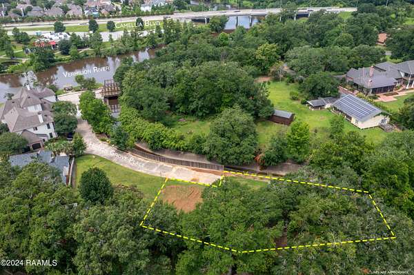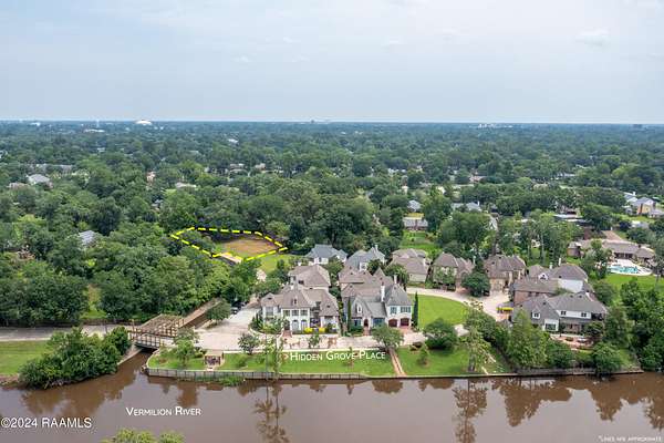 Est $1,457/moRare opportunity to own a ''double lot'' in secluded and gated Hidden Grove subdivision, right off the Vermillion River, across from River Ranch. Lots 16 and 17 being sold together with .48 of an acre. Gorgeous live oak trees, unique driveway configuration, and topography that brings the house pad up to Flood Zone X. There is no time frame requirement to build, and only one HOA fee/year for both lots: $2,625. 2,400 sqft minimum. Please see plat, covenants and restrictions and elevation certificate in MLS.