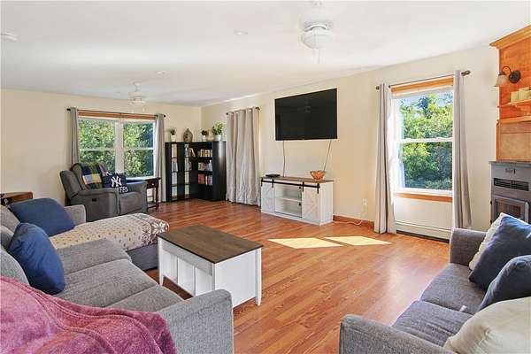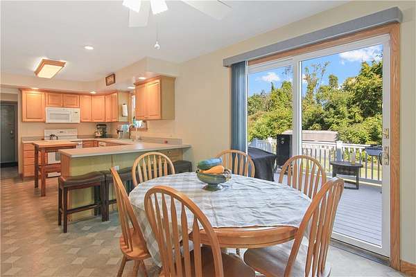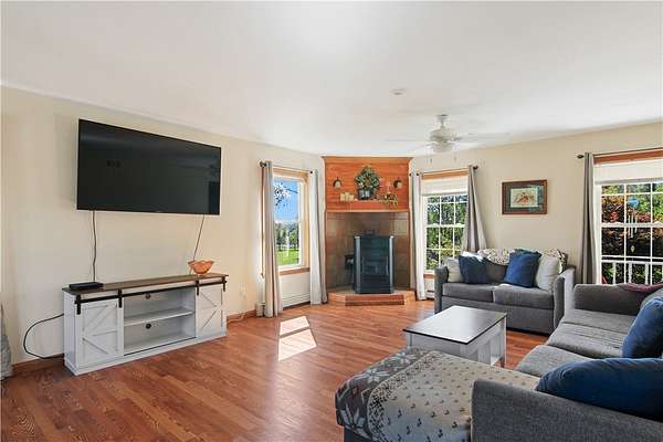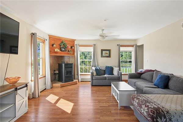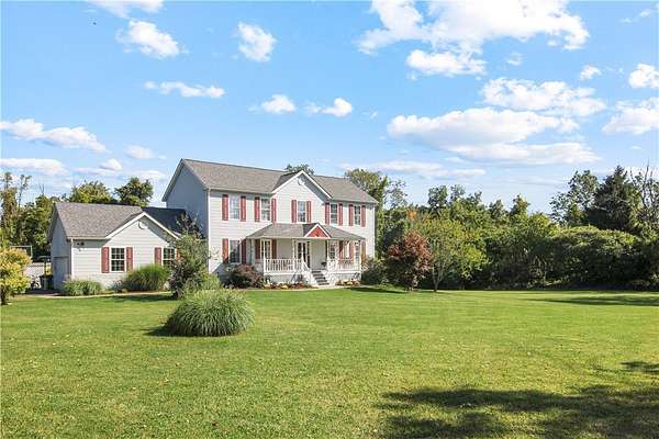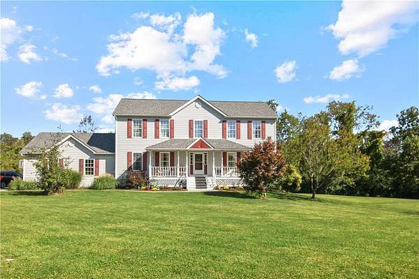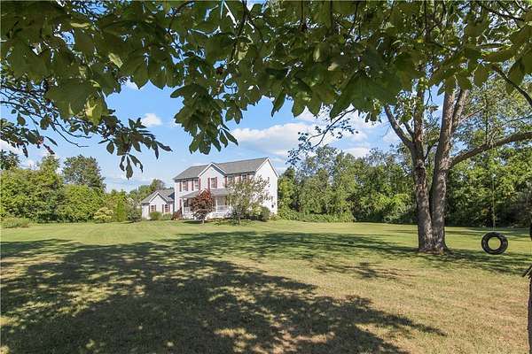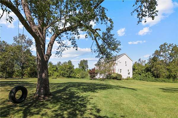 A spacious home nestled on over 8 beautiful acres in the heart of Ithaca. This property offers the perfect balance of privacy, comfort, and versatility- with a main residence plus a separate one-bedroom in-law/rental apartment complete with its own entrance. Perfect for multi-generational living, guest accommodations, or extra income potential. In the generously sized main home, there are three bedrooms upstairs, including a primary suite, an additional full bath, convenient second-floor laundry, and a bonus office room. Fresh updates throughout include a brand new roof, new carpet upstairs, and fresh paint. A cozy pellet stove in the living room adds warmth and charm while the home's many windows bathe the interiors in natural light. The breakfast nook opens onto a deck overlooking the fenced in backyard lined with grape vines. The perfect setting for summer barbecues, gatherings, and everyday relaxation next to the above ground pool. Outside, you'll find a lovingly landscaped retreat with apple, pear, and peach trees. The expansive, flat manicured lawn bordered by a quaint split-rail fence provides space for play and entertaining while the partially wooded acreage with maintained trails invites peaceful walks, morning jogs, and wildlife sightings. Enjoy distant hillside views, especially in the winter, and on summer evenings watch the Fourth of July fireworks on the opposite hill. A truly peaceful setting and lifestyle.