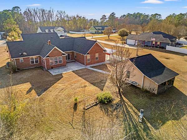Welcome to this beautiful 1 story Rancher with a bonus room, Carolina room and three car garage -- a spacious 5-bedroom, 3-bath home situated on 1.95 acres with a peaceful lot backing to woods. Three of the bedrooms feature private en-suite bathrooms, offering comfort and privacy. This home offers a traditional floor plan with well-defined living areas designed for both comfort and functionality. The inviting living room features beautiful hardwood floors and a cozy brick fireplace. A formal dining room provides the perfect setting for gatherings, while the kitchen offers stainless steal appliances, ample cabinet and counter space. The bright Carolina Room is ideal for morning coffee or relaxing while overlooking the private backyard. The primary suite offers generous space and a well-appointed bath complete with a jetted tub, separate shower, bidet, and double vanity with abundant cabinet storage. A versatile bonus room provides flexible space for a home office, guest room, or additional living area. Thoughtful architectural touches, including crown molding and chair railing, add charm and character throughout the home. Outside, you'll appreciate the attached 2-car garage, separate carport, and detached 1-car garage -- offering plenty of parking and storage options. The expansive lot provides privacy and room to enjoy quiet country living, all just a short drive to historic downtown Conway, shopping, dining, major roadways and approx. 24 miles from the ocean. Space, flexibility, and Southern charm -- schedule your showing today.