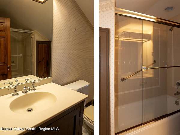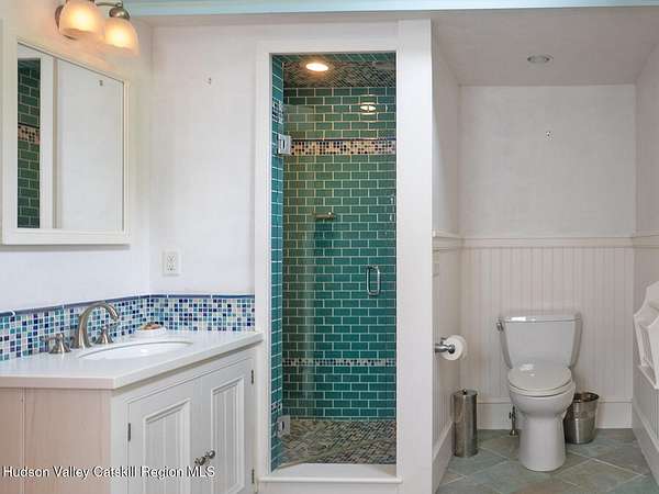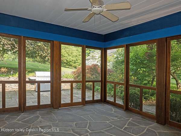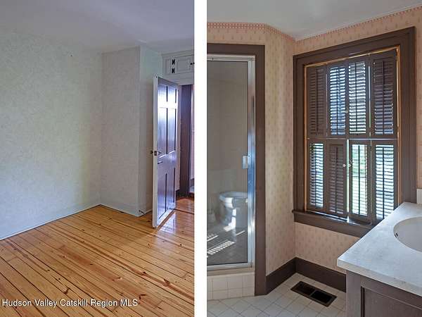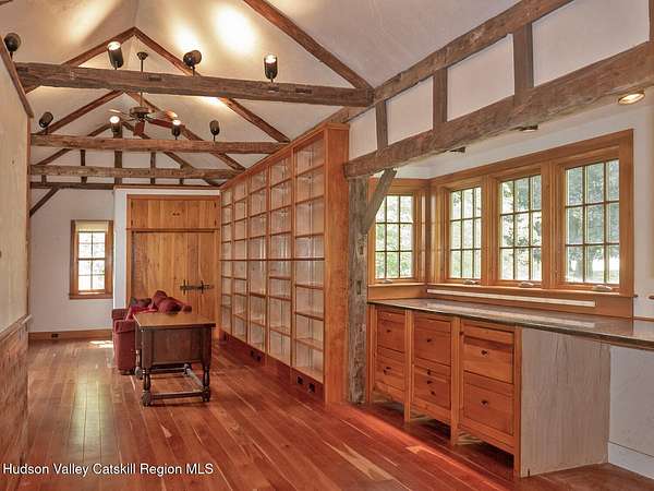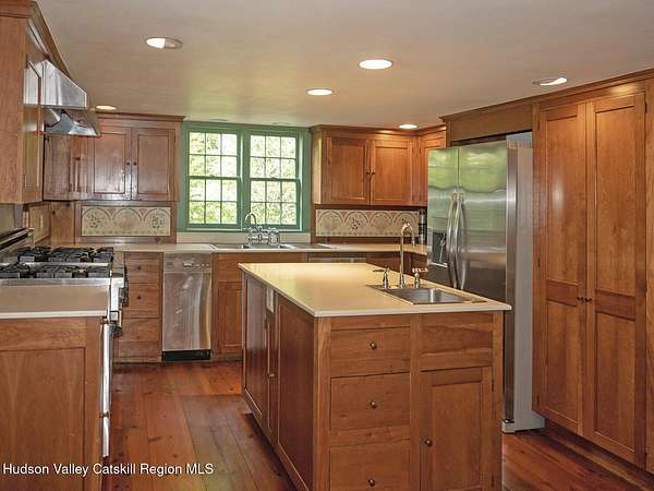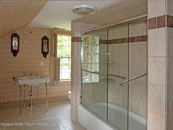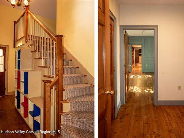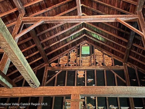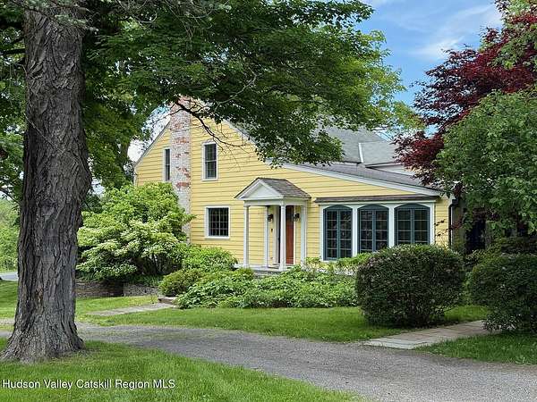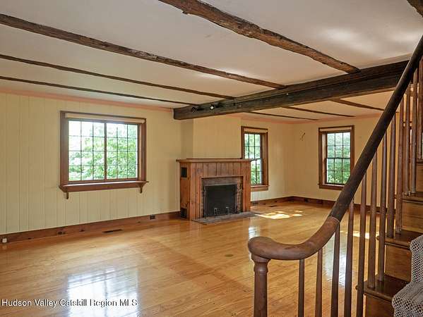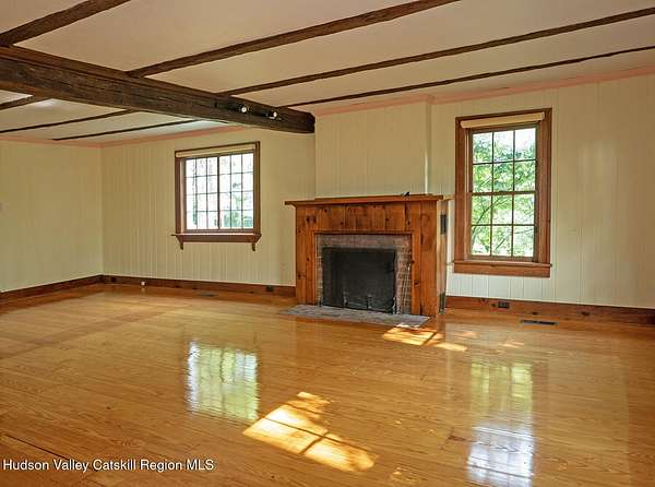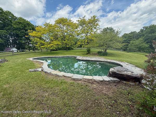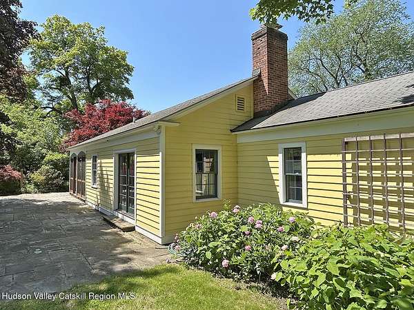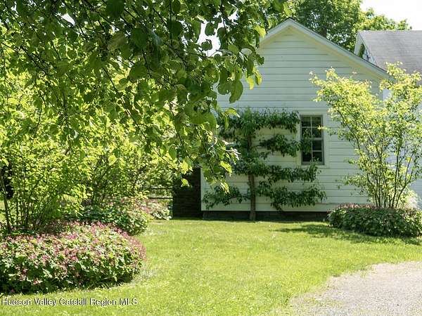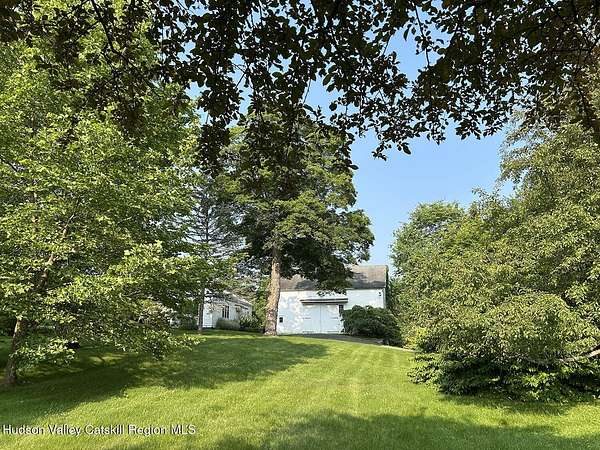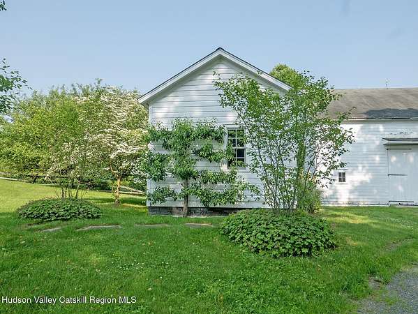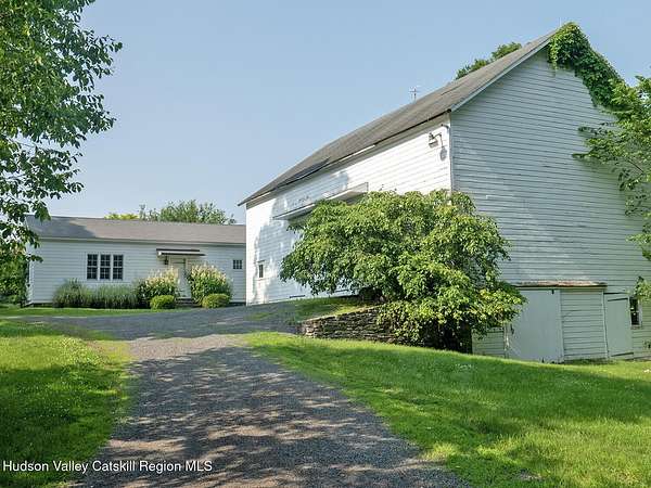 Welcome to historic Surdeval Farm, a spacious 4,500 square-foot, five-bedroom, four-bath homestead on 24.5 acres located between the charming villages of Chatham, Kinderhook, and Valatie. Over the decades the original early 1800's core home was expanded and rearranged and is now ready for its next chapter. The formal entrance to the home is from the grand tree-lined circular driveway to the side door, to a foyer, which opens to a large, beamed living room (with welcoming woodburning fireplace) bypassing the infrequently used front door and revealing an attractive classic curved stair to the second floor. On the other side of the stair, on the first floor, a bedroom or den and adjoining bathroom were installed, while on the second floor there are three traditional bedrooms and two bathrooms. The kitchen was updated to include cherrywood kitchen cabinets and adjacent light-filled dining room was added. The ground floor was extensively enlarged with an informal side entrance and hall that leads to the laundry, kitchen and a second handsome stair to the upstairs bedrooms/baths. The hallway also leads to a sprawling ground-floor primary bedroom suite with wood burning fireplace, separate walk-in closets and shelves, luxurious Jacuzzi-type bathtub, and French doors to a stone patio. A large screened porch also connects to the back hallway. A few steps away from the main residence, a small post and beam barn was completely renovated to become a stylish high-ceiling studio with full bathroom. Nearby is a huge, spectacular hillside post-and-beam bank barn originally used to store hay and grain on the upper floor and on the walk-out lower-level, stalls for horses and other animals. A corncrib and outhouse are remnants of these bygone times. Beautifully landscaped to include perennial native and showy flowers, dogwood and shad shrubs, the property encompasses hundred-year-old trees, grassy meadows, and an inviting curved Gunite pool. Set on a country road with other farms, this area is highly valued as a retreat for prosperous families, especially on weekends during the summer months. Just down the road from the PS21 Center for Contemporary Performance and the Chatham Shaker Museum, it is 2.5 hours from New York City and Boston, half hour to Hudson, Albany, and an easy distance to the peaceful Catskill and Berkshire Mountains.