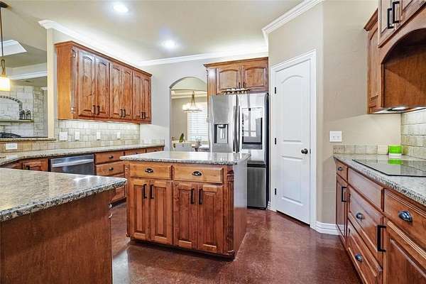- Built-In Features, Chandelier, Decorative Lighting, Double Vanity, Dry Bar, Flat Screen Wiring, Granite Counters, High Speed Internet Available, Kitchen Island, Open Floorplan, Walk-In Closet(s)