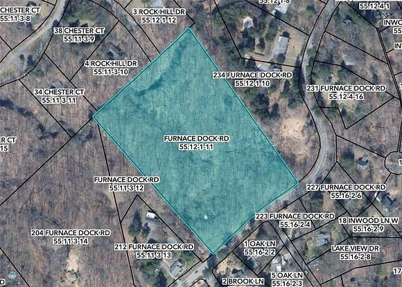 Build the home of your dreams and/or sub-divide this beautiful 10 acre parcel. One of the last large lots of its kind in Cortlandt Manor. 470 feet of frontage on Furnace Dock Road across from Lake Woodrock. All approvals to be obtained and paid for by buyer. Lot backs up to Rock Hill Dr off Chester Court. Five minute drive to the Cortlandt train station and Rte 9A. Elementary currently slated as Pre K-2 Furnace Woods, 3-5 Frank G Lindsay.