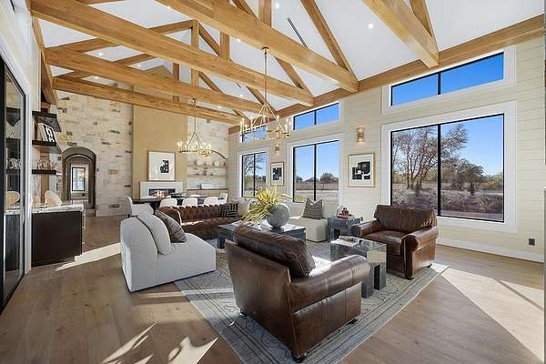 This latest addition to Murphy Yates? Signature Homes sits on 12.52 acres off Hackemack Road. Most of the 4,666 sq.ft. house is on the first floor; the second story includes a living space with wet bar, a full bath, and living quarters. Downstairs, you?ll find the primary bedroom - with its breathtaking adjoining bath - plus two more bedrooms with en-suite bathrooms. The beautiful glass-walled study shares a double fireplace with the great room, an elegant space with tall ceilings and abundant light that includes kitchen, dining, and living space. The exterior walls of both the kitchen and living areas are comprised of glass panels that slide and stack to one side, seamlessly blending the indoor and covered outdoor spaces. This home is simply beautiful, inside and out. Clean lines, a logical and pleasing flow from one space to the next, bold design choices, and a level of luxury that reveals that this is, unmistakably, a Murphy Yates Signature Home.