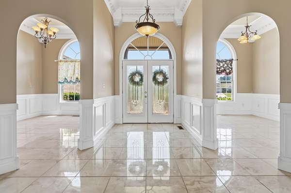 Luxury home with luxury land! Take a look at this gorgeous single story home with full walk out basement ready for the whole family to enjoy! Boasting a 2 car attached garage, as well as a huge detach garage for all the extra toys to use on over 6 acres of land! Got someone coming to visit? No problem as this property contains a seperate one bedroom apartment with its own full bathroom and living area/kitchen ready to go. 3 bedrooms all on the main level, along with a gorgeous living area, dining area, and beautiful kitchen with updated appliances. Custom crown molding throughout, gorgeous tile and hardwood floors make this home top notch with all its detail craftsmanship! Head downstairs where the fun is, as this home has its own home movie theatre ready to watch all your favorite movies. You could also hook up that gaming system and feel like you are right in the action! Set up with a full area ready to create your own kitchen area, and full bath. Take in the outdoors with a large back patio perfect to sit back and relax, host friends, and maybe start up the grill for some outdoor cooking. Don't forget about the pond! With access all around it, get ready to reel in some fish, or maybe just relax and watch the ducks. This home has it all with spacious living and huge front yard giving you the space you want and desire!