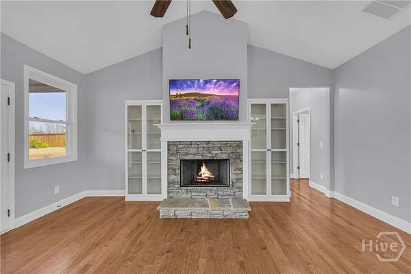 1.8 Acre Lot w/ a one level home that includes a bonus room upstairs. Side entry garage, deck, and screened in porch add to a little Southern charm style life to this property in the country. The cool factor is how close to Kroger, Walmart, Lowes, and more you will be at the home.. Inside you will enjoy the hardwood floors in living space, tile baths, vaulted great room, split bedroom plan with 2 bedrooms and a full bath on the right, and the primary suite on the rear left. Double vanity, garden tub, and step-in shower is a comfortable set up for the primary suite. The great room is open to the kitchen and dining area. It features a fireplace and built-in bookshelves with glass fronts. A screened in porch on the back is the perfect spot to look over spacious backyard. Rear deck is attached for grilling or your patio table. The backyard offers a lot of space. Fenced in area near back of home, garden spot, and open area w/trees too. A small Garden shed is in front of tree line, and The lot goes beyond that tree line in the rear.