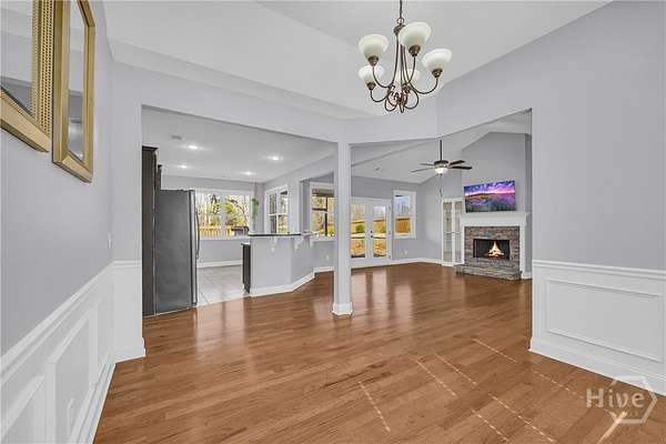 - Breakfast Area, Built-In Features, Ceiling Fan(s), Double Vanity, High Ceilings, Main Level Primary, Separate Shower, Split Bedrooms, Tray Ceiling(s), Vaulted Ceiling(s)