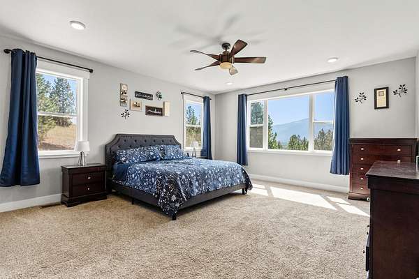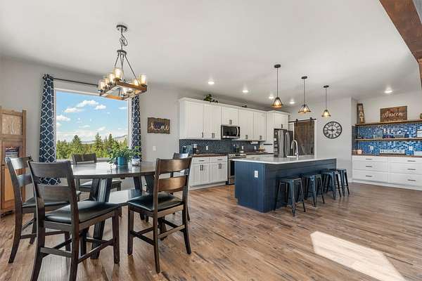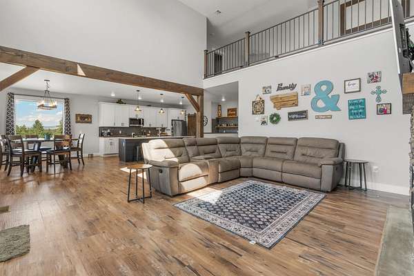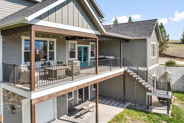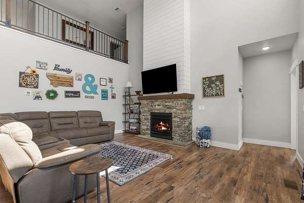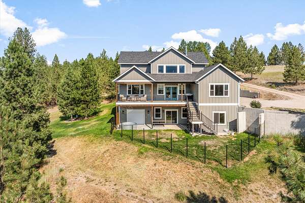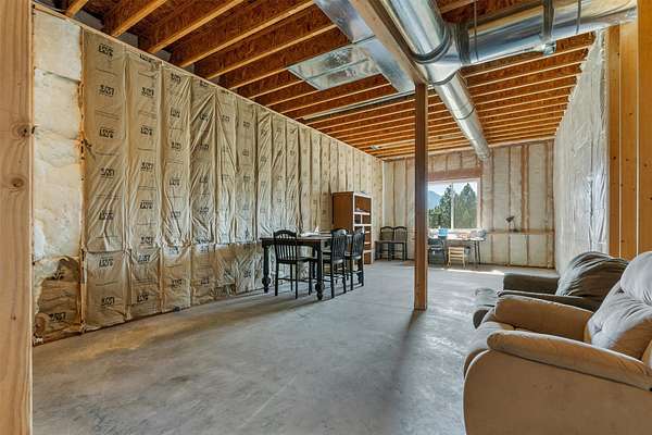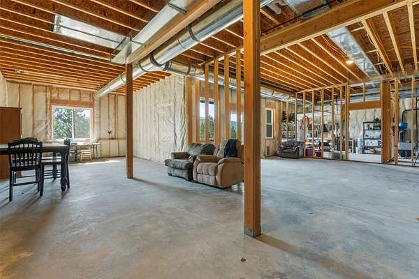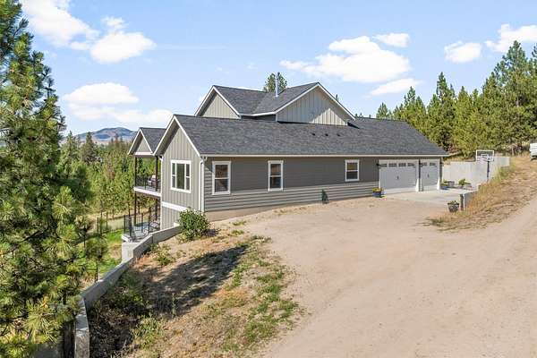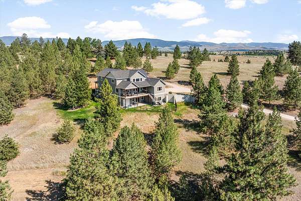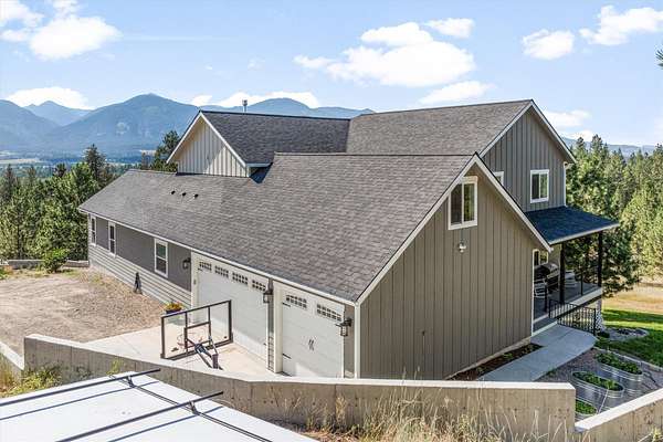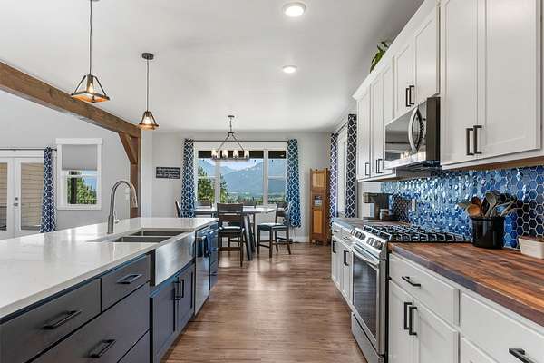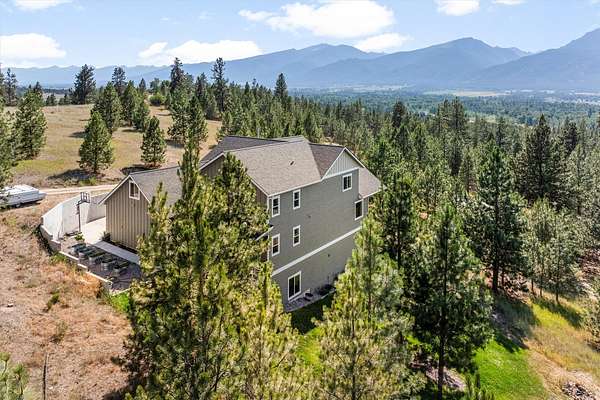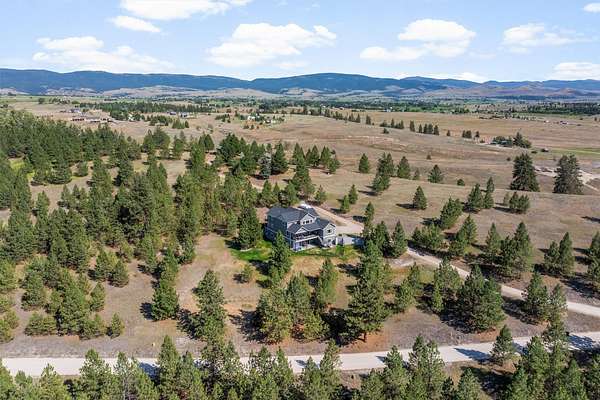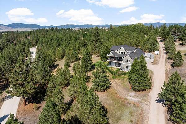 Stunning 4-bed, 3-bath custom home on 2 acres with sweeping mountain views! Crafted in 2019, the residence has 3,770 sq.ft. of finished living space plus a 2,318 sq.ft. unfinished basement with high ceilings, workshop area, and rough-in plumbing for a future bath. The main level offers a striking kitchen with a beautiful blue tile backsplash, a magnificent quartz island, and open flow to the dining and living areas. The exposed wood beam, lofty ceiling, gas fireplace, open balcony and mountain views create a warm and inviting atmosphere. The main floor primary suite is just off the living area and includes a spacious bedroom with two walk-in closets and a luxurious ensuite with a deep soaking tub, tiled double shower, and dual vanity. A second bedroom, guest bath with tile shower, laundry, and mudroom complete this level. Upstairs features two large bedrooms, full bath with dual vanity, second laundry, work nook, and a massive family/rec room. Extras include 3-zone central AC/heat, 3-car attached garage, fenced backyard, UG sprinkling, raised garden beds, lower level patio, and elevated/covered deck for taking in the breathtaking beauty of the Bitterroot Valley!