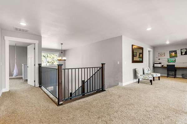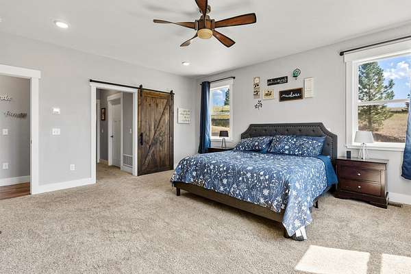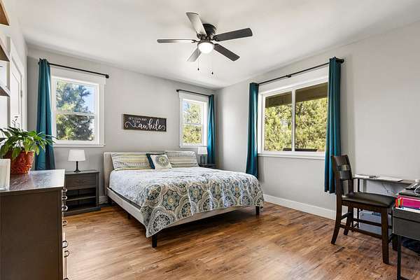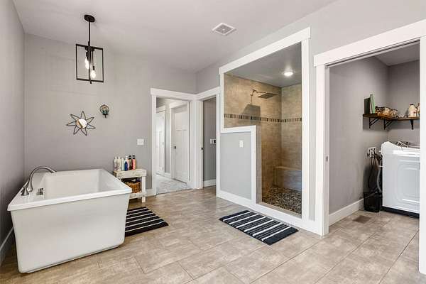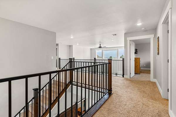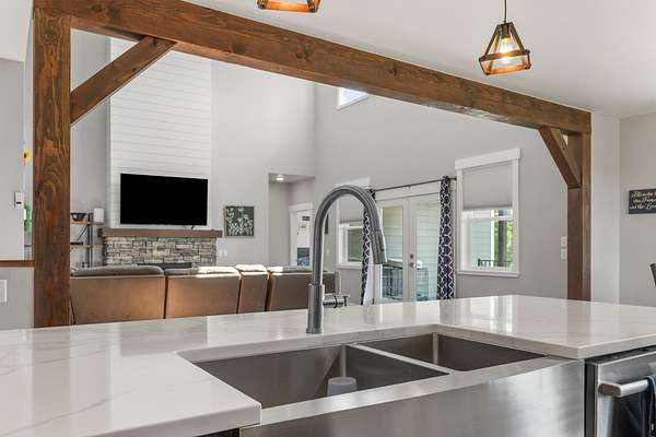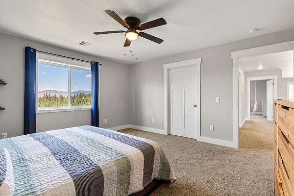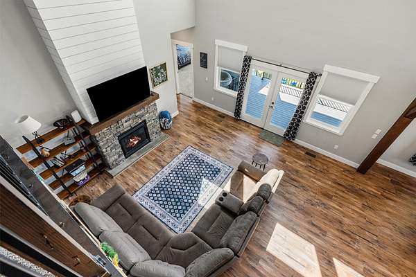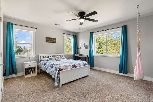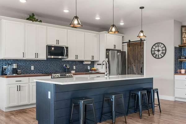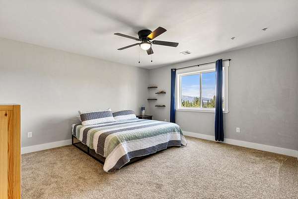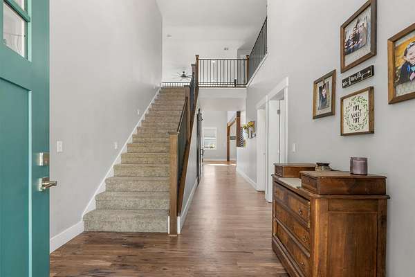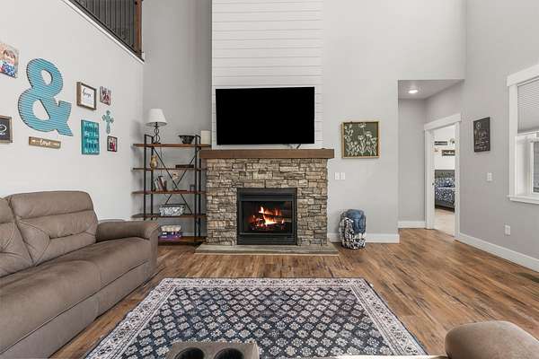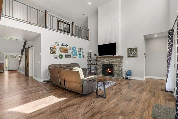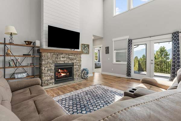 Stunning 4-bed, 3-bath custom home on 2 acres with sweeping mountain views! Crafted in 2019, the residence has 3,770 sq.ft. of finished living space plus a 2,318 sq.ft. unfinished basement with high ceilings, workshop area, and rough-in plumbing for a future bath. The main level offers a striking kitchen with a beautiful blue tile backsplash, a magnificent quartz island, and open flow to the dining and living areas. The exposed wood beam, lofty ceiling, gas fireplace, open balcony and mountain views create a warm and inviting atmosphere. The main floor primary suite is just off the living area and includes a spacious bedroom with two walk-in closets and a luxurious ensuite with a deep soaking tub, tiled double shower, and dual vanity. A second bedroom, guest bath with tile shower, laundry, and mudroom complete this level. Upstairs features two large bedrooms, full bath with dual vanity, second laundry, work nook, and a massive family/rec room. Extras include 3-zone central AC/heat, 3-car attached garage, fenced backyard, UG sprinkling, raised garden beds, lower level patio, and elevated/covered deck for taking in the breathtaking beauty of the Bitterroot Valley!