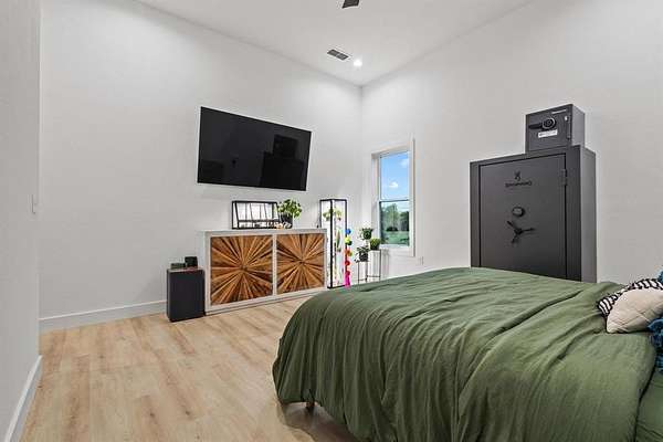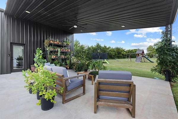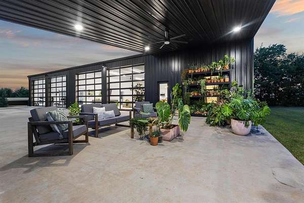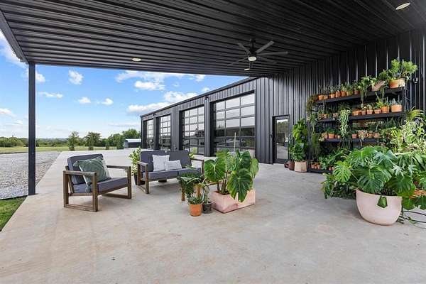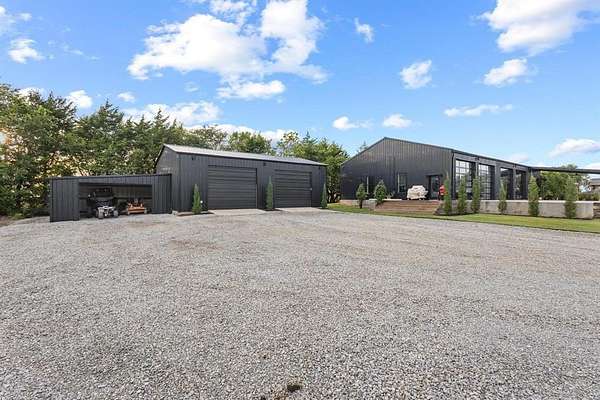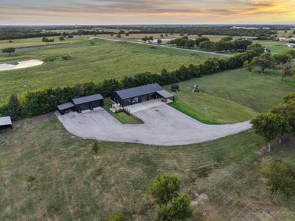A rare combination of modern design and country serenity -- this striking black metal barndominium sits on 11.5 ag-exempt acres just minutes from Sherman Town Center, Denison, and Pottsboro schools. Offering 2,702 sq ft of living space, this home showcases an open-concept layout with 4 bedrooms, 2 bathrooms, and soaring ceilings that create a bright, airy feel throughout.