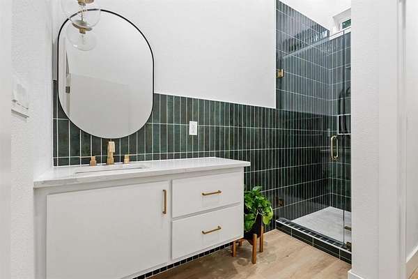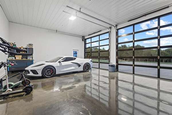 An oversized attached garage provides ample space for vehicles, hobbies, and projects, highlighted by four 11'x12' glass doors and sleek epoxy floors for a polished, high-end look. The 1,066 sq ft detached shop with dual 12'x12' overhead doors offers additional storage or workspace for equipment, tools, or business use.