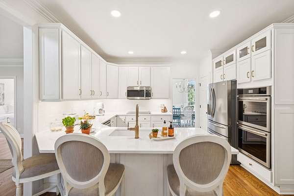 - Cooktop, Dishwasher, Disposal, Double Oven, Electric Oven, Electric Range, Microwave, Refrigerator, Stainless Steel Appliance(s)