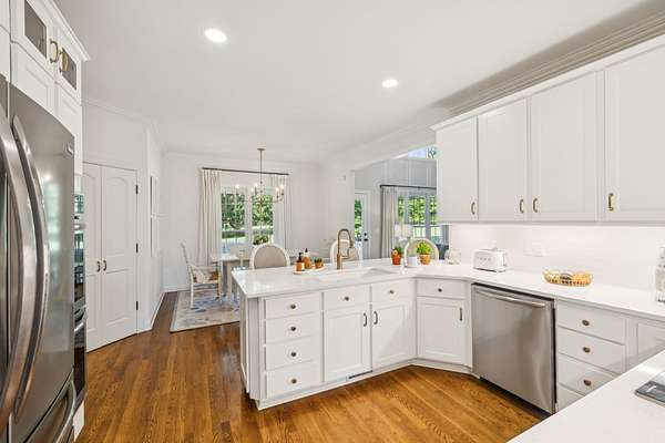Nestled on 2 serene acres on a quiet cul-de-sac in the desirable Albany Pointe, this impeccably maintained home offers a private retreat just minutes from downtown Franklin. Designer touches abound, including custom window treatments with handmade rods by renowned Franklin artist Kris Nethercutt, new chandeliers, and designer wallpaper throughout. The home features new paint throughout, a secret walk-in dressing/lounge room in an upstairs bedroom, a charming private sitting room/office adjacent to the garage, and an all-season climate-controlled Florida room with a swim spa that doubles as a relaxing hot tub. Additional highlights include a heated and cooled epoxy-coated 3-car garage, multiple large walk-in storage areas on the second floor, a permanent fire pit steps from the private outdoor entertainment area with views of rolling hills, a clean encapsulated crawlspace, new roof, gutters, downspouts, and extensive landscaping with lighting. This home is truly a rare find, offering a peaceful retreat in a sought-after location.