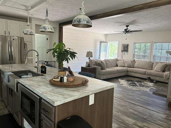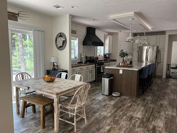 Est $2,100/moWooded 9.824 acres (SSISD) with a 2023 manufactured home with 4 bedrooms 3 bathrooms, 2 log fireplaces, walkin closets, water well, spacious kitchen, nice size laundry room and much more. Appliances include the following: Fridge, range, dishwasher, disposal. If survey is required buyer will order and pay for it.