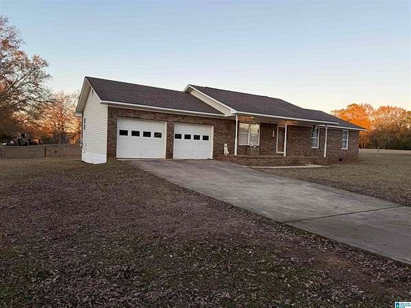 Est $1,884/moMove in ready with great acreage, pond, and creek frontage in Eastaboga! Main home is brick and vinyl siding, 4 bedrooms, 2 full baths, great living/dining space, galley kitchen and spacious laundry room with 2 car garage. Second home is for storage only. There is also a detached garage/shop, perfect for working on your projects, storage or your man cave! The majority of the land is fenced pasture and features a small barn, pond, and creek frontage. Location, location, location! This property has a very private setting but is located 1 mile from I-20, 10 miles from downtown Oxford, 7 miles from Lincoln, and 14 miles from Talladega.