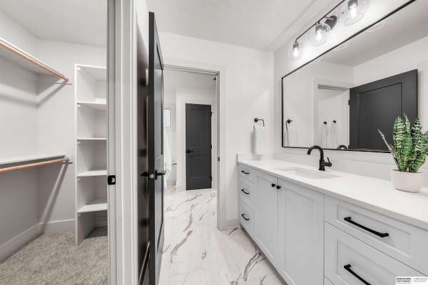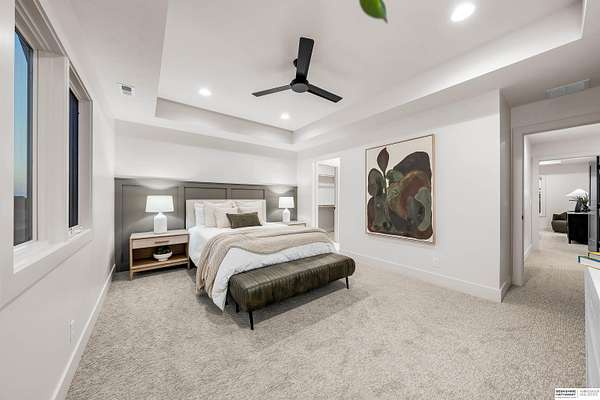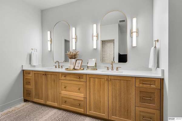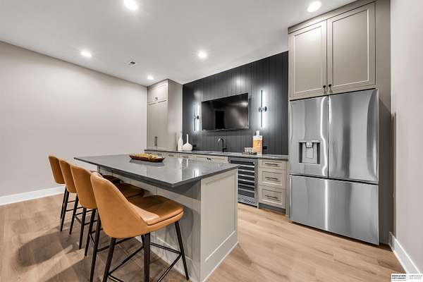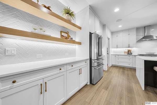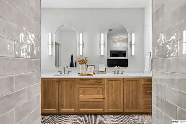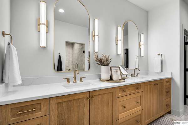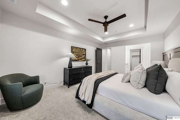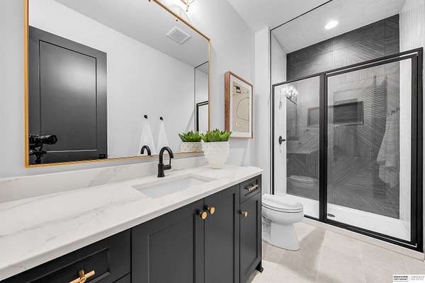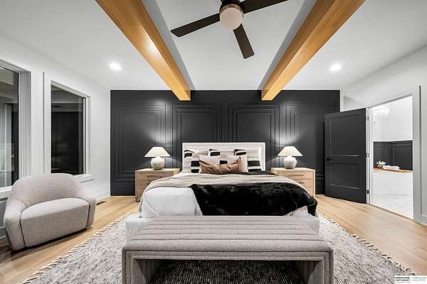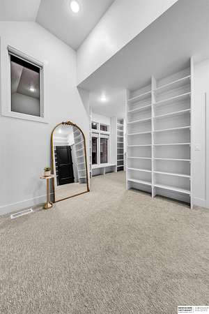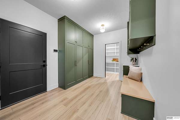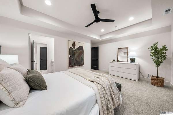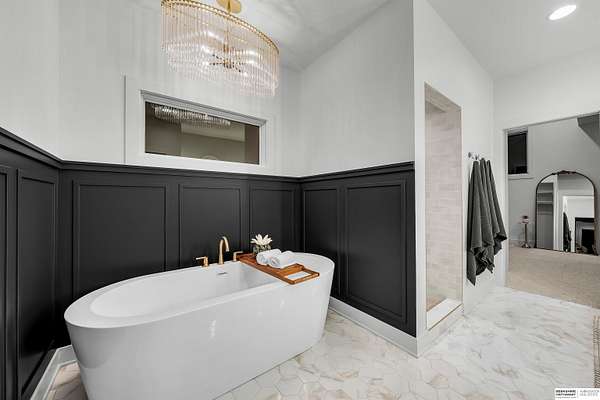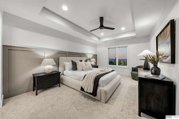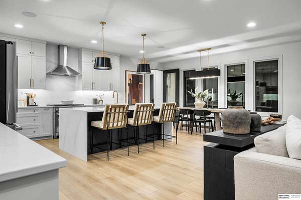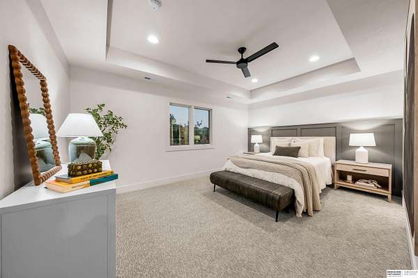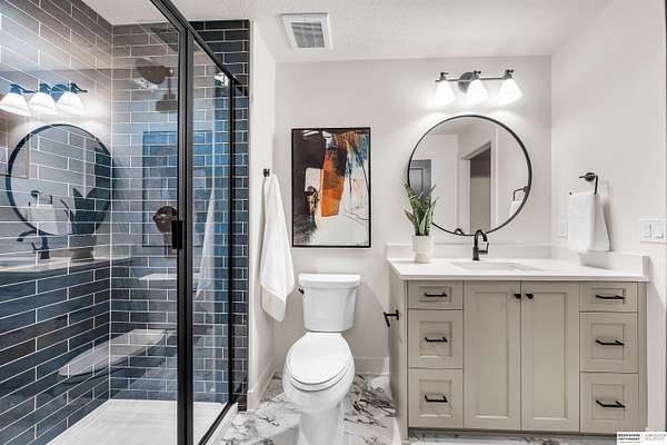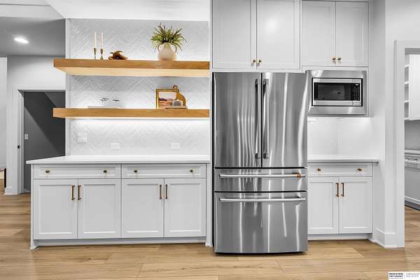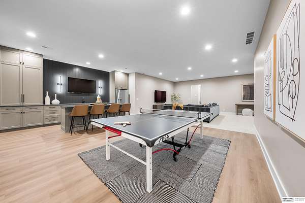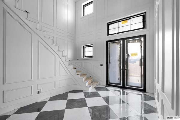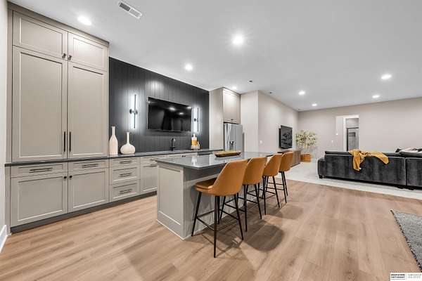 Joe Evans, M: 402-612-7993, joe3evans@gmail.com, https://www.bhhsamb.com - Acreage living awaits in this extraordinary 1.5-story home by iCON Homes, perfectly situated on 1.5 acres in the highly sought-after neighborhood The Estates at Wynnwood. Step inside and be captivated by the circular staircase, open great room with its striking floor-to-ceiling brick fireplace, a chef-inspired gourmet kitchen featuring a stunning waterfall island, and an expansive walk-in pantry. Your private oasis offers panoramic views of lush greenery and mature trees, creating an unparalleled sense of peace and privacy. The main floor boasts a luxurious primary suite with a spa-like bath, including a soaker tub, walk-in shower, and huge custom closet, plus a convenient home office. Upstairs, you'll find three additional bedrooms, two baths, and a spacious bonus room. The lower level is an entertainer's dream--complete with an 11 foot drooped floor gym, full bar, additional bedroom with bath, and a large rec r