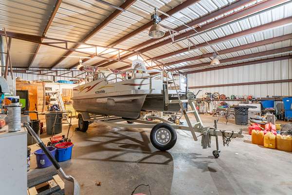 Masonry veneer exterior, poured concrete foundation, metal roof, stick-built workshop. Built to last with professional upgrades throughout. Single story for accessible living.