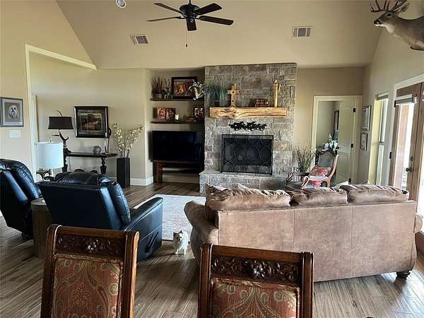 Exquisite 65 Acre Experience serene country living on this stunning 65-acre ranch featuring three beautiful homes, a private workshop apartment, and two scenic ponds. The main residence spans 3,630 sq ft with 4 bedrooms and 3 baths, highlighted by cathedral ceilings, a grand foyer, and multiple outdoor living spaces--including a wraparound front porch, a peaceful courtyard, a covered side patio with a wood-burning fireplace, and two rear patios overlooking 2 acre pond. The primary suite offers a cozy sitting area with its own fireplace and a spa-inspired bath with dual vanities, a soaking tub, oversized glass-enclosed shower, and water closet. Two guest homes, each approx. 2,000 sq ft, feature 3 bedrooms, 2 baths, and attached 2-car garages, ideal for extended family or guests. A well-appointed workshop includes a 1-bedroom apartment with full kitchen, living room, and bath 495 sq ft. Outdoors, enjoy a 2-acre deep-water pond with pier, plus a second pond behind one guest home--perfect for fishing and relaxation. The property is fully fenced with an electric gated entrance and chip-and-seal driveway, while the main home enjoys its own private gated entry. Located just minutes from Emory, this exceptional ranch offers refined country comfort, privacy, and versatility--ideal as a family estate, retreat, or multi-generational homestead.