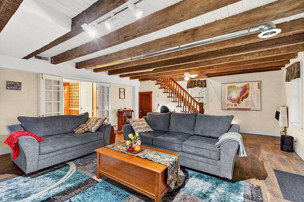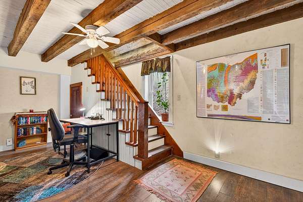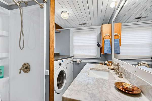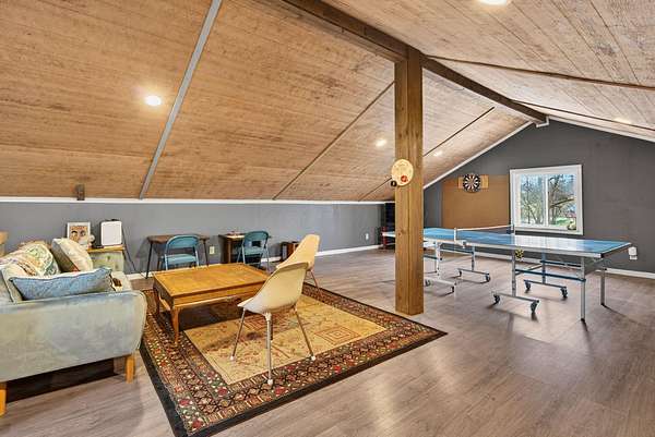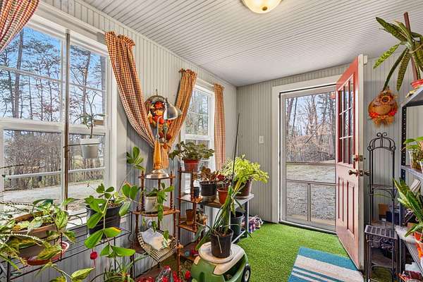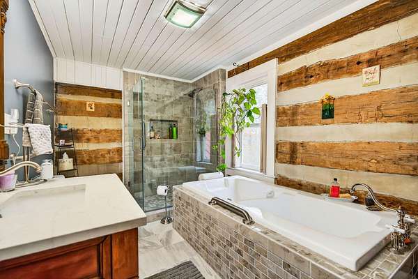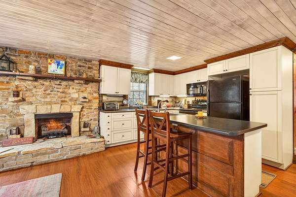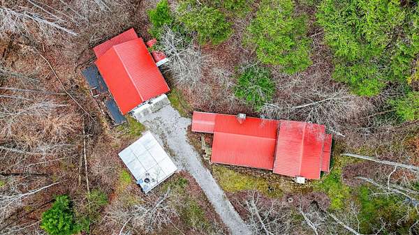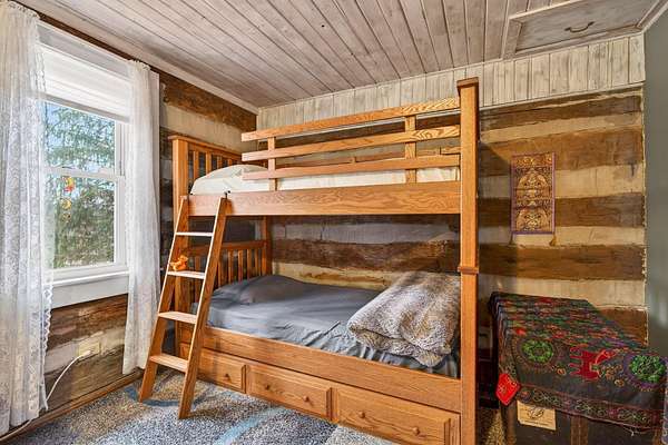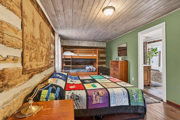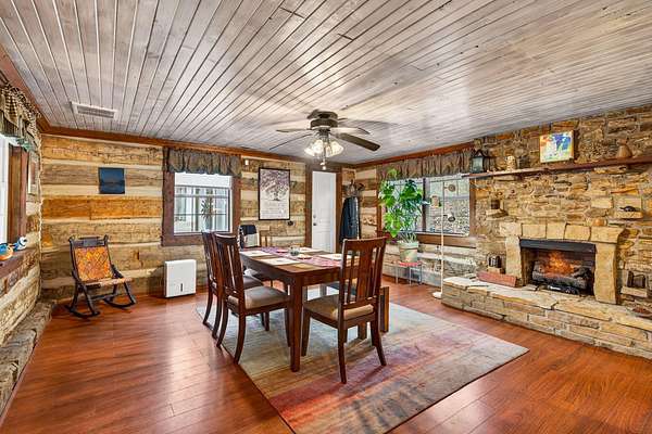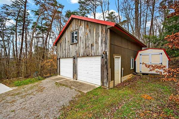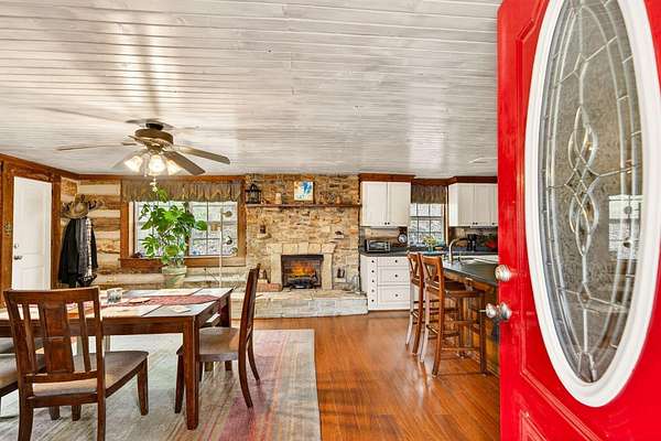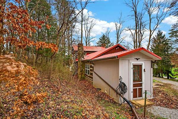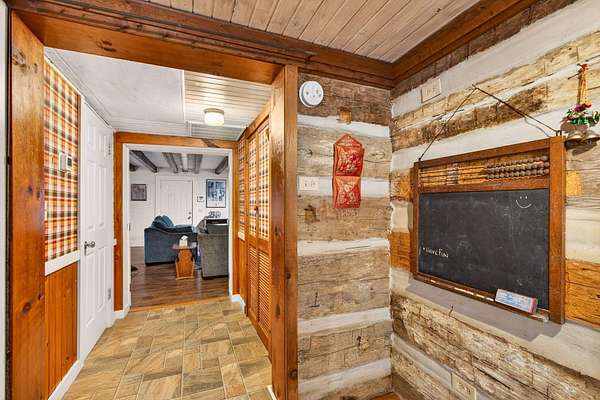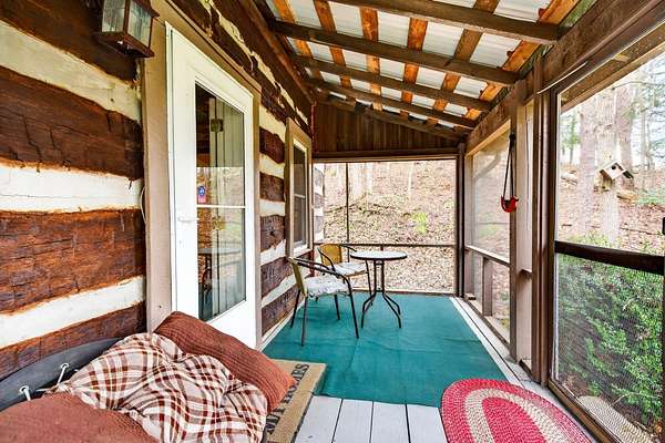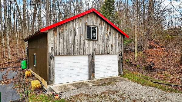 Escape to the quiet in this modernized log home perfect for a weekend retreat or permanent lifestyle. On the main level you will find a beautiful kitchen with appliances, fireplace, eat-in dining area and bonus mud room. Guest bathroom and laundry with washer/dryer remaining. The large living room hosts another fireplace, adjacent to the screened-in porch. Upstairs hosts the primary bedroom with brand new bathroom - complete with a soaking tub, shower and large vanity. And the best part? The 2 car detached garage has a finished game room for entertaining. Located on almost 2 acres, this property borders the Lake Katharine State Nature Preserve, with 2,019-acres centered around a clear-water lake surrounded by sandstone cliffs and deep ravines. This preserve features over 7 miles of hiking trails, including the Pine Ridge Trail (2 miles) and the Salt Creek Long Loop (1.1 miles). Don't miss your chance to own this unique property.
