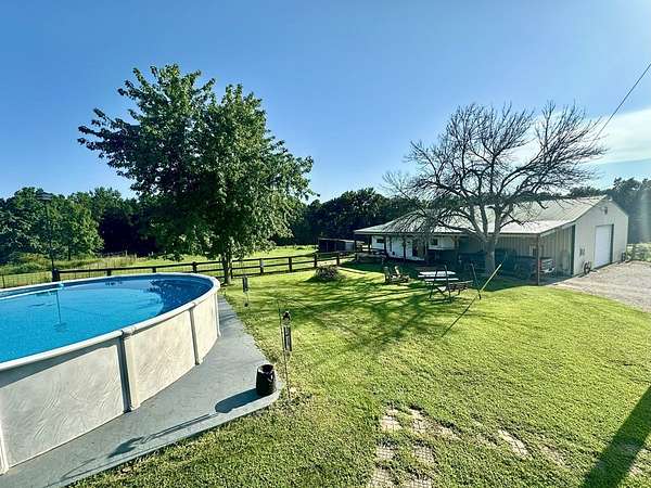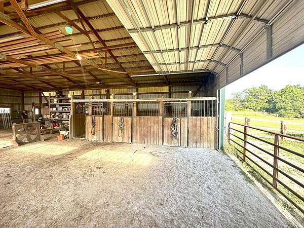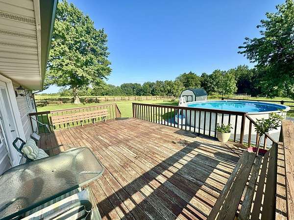 Est $1,477/moCharming 2BR Ranch on 10 Acres w/ Horse Barn & Pool - Enjoy the best of country living with this well-maintained 2-bedroom, 1-bath ranch home on 10 picturesque acres. The 1,056 sq ft home features quartz countertops, a spacious primary bedroom, and a full unfinished basement with great potential. Step outside to a 16x24 deck overlooking an above-ground pool set on a 26x26 concrete pad—perfect for relaxing or entertaining. Equestrian-ready, the 63x40 barn includes 3 stalls, a 16' lean-to for trailer or equipment storage, and plenty of space for future expansion. Property includes multiple outdoor faucets, a freeze-proof waterer, and strong fencing—ideal for horses or livestock.