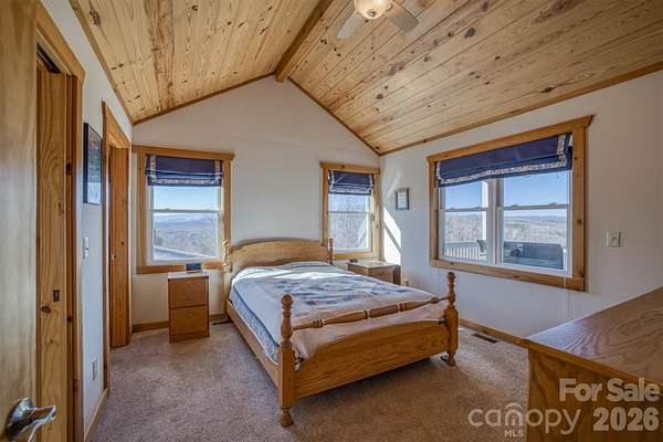 This rustic mountain home is all about the views! From the covered rear porch, gorgeously landscaped yard & nearly ever window in the home, Grandfather & Shortoff Mountain are your full-time vista. Breathtaking sunsets over the towering Black Mountain Range to the west. Views of the community lake in the valley to the east - truly panoramic! The home is thoughtfully designed for main floor living w/ wide halls & doorways (ADA accessible). Dining area & kitchen are open w/ tons of storage, dark granite counters, a swanstone sink, maple cabinets & stainless appliances. The great room centers around a gas log fireplace with a walnut mantle, vaulted ceilings & high windows for lots of natural light. Wake up to views of mountain peaks poking through the morning mist. Laundry room is located in the primary BR walk-in closet for convenience. Guest BR on main w/ a murphy bed & hideaway stairs to the small loft - the perfect sleepover hideout when the grandkids visit. Finished basement has a private guest bedroom & full bath and a bonus room with it's own mini-split climate control - the perfect home gym or sewing/art room. There's a large open room in the middle that would make a wonderful den or theater room - it's been used as a home workshop by the current owner so it has a shop sink and 220 volt outlet. Current owner is a master gardener and has thoughtfully planted tons of flowers, trees, asparagus, etc. all over the gently sloped back & side yard. Whether you're dreaming of a quiet place to retire and enjoy the simple life or a weekend haven to escape to, Don't sleep on this beautiful mountain home!