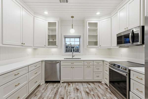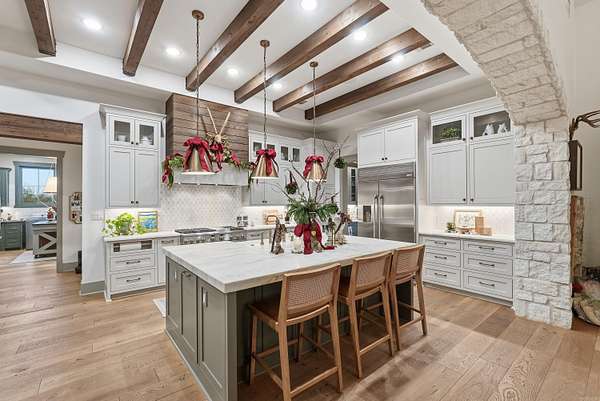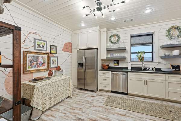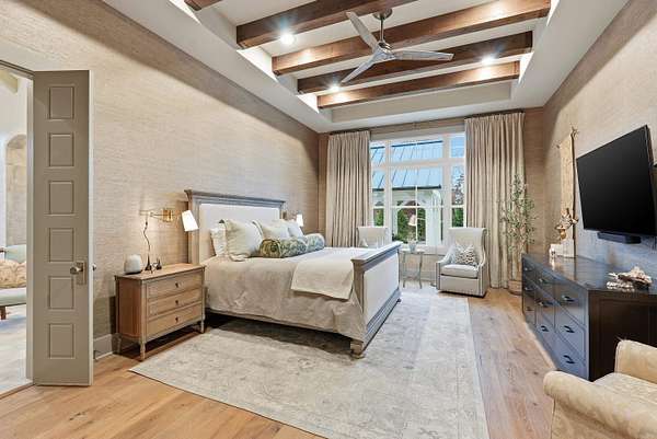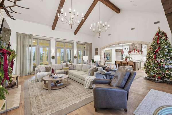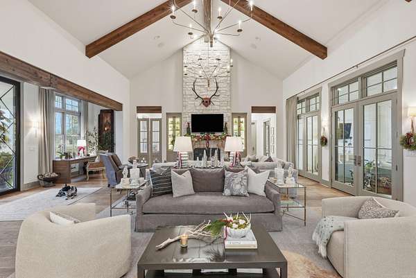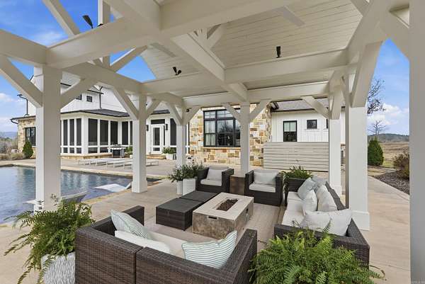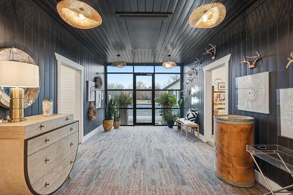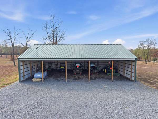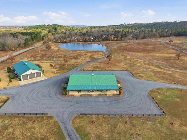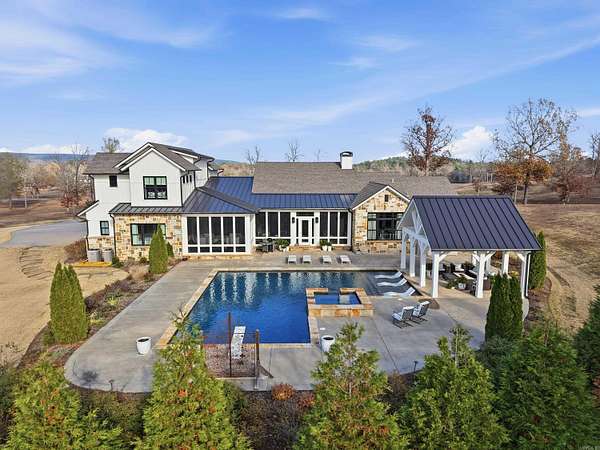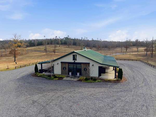 Extraordinary 40-acre gated luxury estate offering privacy, resort-style amenities, and multiple living structures. Built in 2017 and fully remodeled in 2024, this amazing property features exceptional craftsmanship, energy efficiency, and versatility - ideal for a family compound, equestrian estate, or luxury retreat. The 4,959 sq ft main residence offers custom features, hardwood floors, 4.5 baths with en-suite bedrooms, a flexible bonus space, dual laundry rooms, storm shelter, and a spa-like primary suite with heated floors. Screened porches overlook a saltwater pool & spa, perfect for entertaining and private relaxation. The grounds include a stocked 1.5-acre pond, fenced open acreage, and gated entry suitable for livestock or horses. Additional structures include a 3,000 sq ft heated & cooled barn with kitchen & 1/2 bath, event space & workout room. Also included is a barndominium (3700 sq ft, heated & cooled) with finished living quarters, as well as a 40x60 pole barn for storage or equipment. A rare luxury country estate combining modern systems, multiple dwellings, pond, pool, and expansive acreage with turnkey improvements.