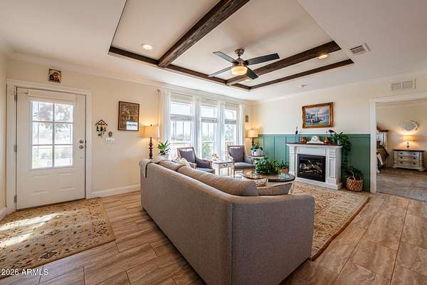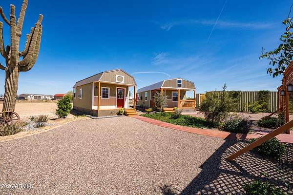 Set on a sprawling 2.5-acre lot with a private well, this beautifully upgraded property offers the perfect blend of space, comfort, and versatility. The main residence features 4 bedrooms, 3 bathrms, and 2,368sf of thoughtfully designed living space with a stylishly upgraded interior. Step outside to your own private retreat, complete with a sparkling pool, gazebo, and an extensive network of concrete walking paths that wind through lush, irrigated landscaping and a vibrant garden. The grounds provide both beauty and functionality, ideal for relaxing or entertaining.Adding exceptional value and flexibility, the property includes two fully built-out tiny homes-perfect for guest accommodations or multigenerational living. This unique property offers endless possibilities in a serene expansive setting.