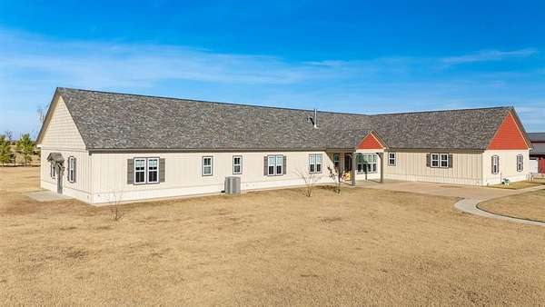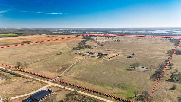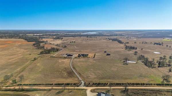 With a landscaped entry & security gate, this 6 bedroom 6 bath Custom Home is designed and built for a large family or flexible family living & entertaining! Built with modern touches -10' ceilings, crown molding, recessed LED lighting, custom roll up shades, quartz countertops, ex-large bedrooms, double vanities in baths, tiled walk in showers & more! This unique design centers two separate wings around the 2 kitchen areas & a massive dining area & entertaining area where the windows provide plenty of natural light as well as a wood stove. The kitchens feature quartz countertops, island, gas stoves, double ovens, 2 refrigerators, double pantries, buffet kitchenette & more. The master bedroom features his & her baths with double closets and overhead storage system as well as a coffee bar, sink & private porch. The 5 large bedrooms all have custom closet system with additional overhead storage. The baths have double vanities, 2 with tubs & 2 with tiled showers. Plenty of space & storage in all baths. 2 utility rooms with the offering a sink, quartz folding table, washer & dryer hookups and plenty of room for freezers and refrigerators. The landscaped yard has a wide range of bushes, shrubs and a variety of trees with custom irrigation system. Also in place, a large capacity concrete storm shelter. Backyard has extended concrete patio & concrete basketball court ready to enjoy! The 75x75 metal shop has foam insulation, concrete, electric, water, 6 roll up doors, storage room, generator hook up, overhead storage, half bath and covered parking. A 50' metal equipment shed for covered parking. This area is surrounded by graveled parking area for large equipment, RV or trailers. Plenty of good fencing & cross fencing with several pastures (Bermuda, Clovers & Rye grass), small paddocks with water, 2-50x50 metal barns, 25x75 metal barn, 3 pond and seasonal creek provides surface water in pastures. Easy access to DFW, Paris & Sherman makes this perfect for a Corporate Retreat