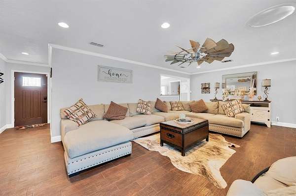 ONE ADDRESS, TWO HOMES! THIS IS A MUST SEE IN PERSON! In order to appreciate the value of this amazing property you have to see it to believe it! Experience the ultimate in multi-generational living with this private 1.73-acre gated estate. The property features a main ranch-style residence and a separate, detached barndominium, offering the perfect setup for aging parents, guests, or an income-producing rental. The entire property is fully fenced with a gated entry and a circle driveway, surrounded by mature trees and a sprawling yard. The main 4-bedroom, 3-bathroom home features an open-concept layout with granite countertops, plantation shutters, and wood-look tile flooring. Modern upgrades include a brand-new roof with solar panels (fully paid for and ready for connection), brand-new exterior shutters, and custom fireplace caps.