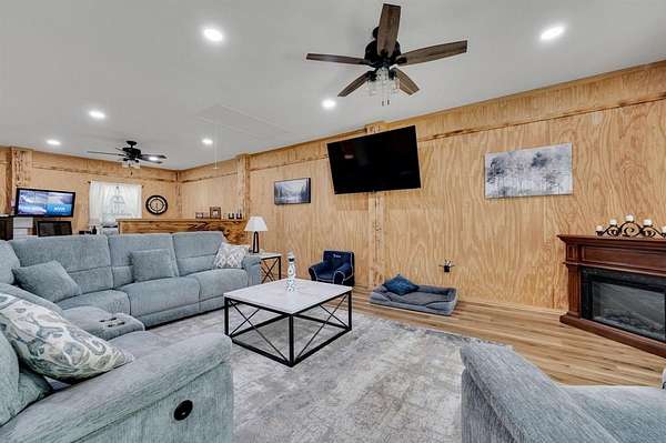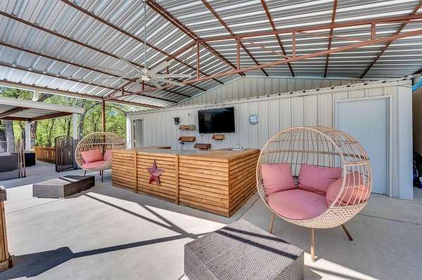 Completed in 2024, the detached barndominium offers a full kitchen and dining area, a living space, a private bedroom, a full bathroom with a shower, and a flex area ideal for an office or guest space. For those with recreational vehicles, the property includes a 40x60 open shop perfect for boat or RV parking, equipped with 30-amp and 50-amp hookups and a clean-out. Additional features include a two-car garage, a private well for self-sufficiency, and brand-new roofs on all shops and awnings throughout the grounds. This property is a rare find that combines modern efficiency with the peaceful tranquility of a countryside homestead. (All pool equipment, TV in playhouse, and security cameras stay with the property after the sale).