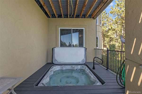 This unique custom built home located in the coveted town of Indian Hills Colorado, located between Evergreen and Conifer offers mountain living with a contemporary feel. The house has easy access to Hwy 285 and is only 5 miles from Hwy C-470, making the drive to Downtown Denver an easy half hour. The property boasts both city and mountain views of Mount Falcon State Park from the cathedral windows. The paved driveway meets a county maintained road that is routinely plowed. This unique contemporary stucco beauty is energy efficient in both the winter and summer months. It provides covered patios on the main floor and lower level for outdoor dining and entertaining. The main level patio also has a distinctive indoor/outdoor fireplace for cool mountain evenings. The house has two primary bedrooms; on the main level and second level. All 4 bedrooms feature en-suite bathrooms. The walkout basement has uncommon twelve foot ceilings and roughed in plumbing for media room, additional bedroom, bathroom and possible kitchen and wet bar. The lower custom built deck provides high entertainment value with a built in pool and hot tub that gives the appearance of below ground features. When you own this property you can rest assured that your family is protected by the full-house water and air radon mitigation systems, along with a Generac home generator for those unpredictable stormy nights. In addition, this property backs to a one hundred acre ranch for easy access to enjoy ponds and secluded hiking trails with your furry friends. If hiking isn't in your plans the owners have built a chicken coop as a family hobby and to enjoy fresh eggs. Come see this unique property today!