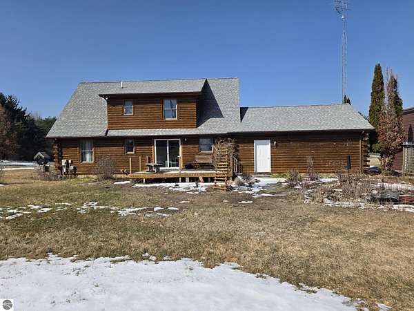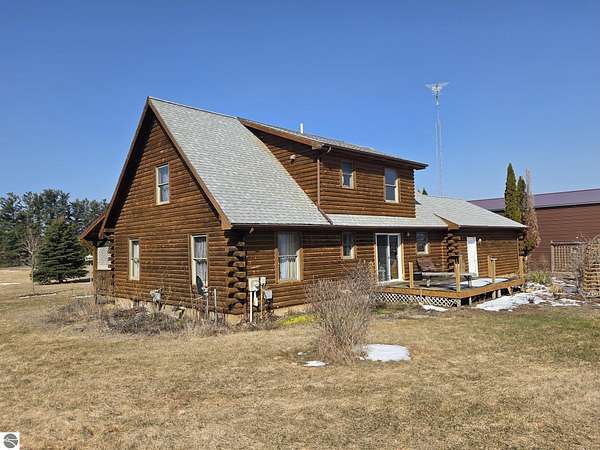 Est $1,950/moCustom log home in Mid-Michigan, Beal City School district. Vaulted ceilings, Three bedrooms, two bathrooms, 1680 square feet with a full basement. A nice 4 Acre parcel. Includes a large covered porch on the front, 13' x 19 ' deck on the rear. This home is located near Coldwater Lake on a paved road. Natural Gas. 30 ' x 40 ' steel building with concrete floor and 14 ft sidewalls, One 12 ft door on rear, two 8ft x 7ft doors on the front.