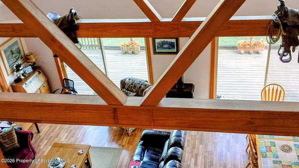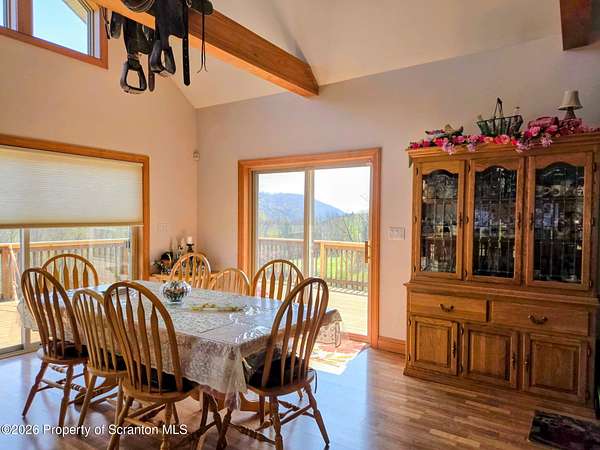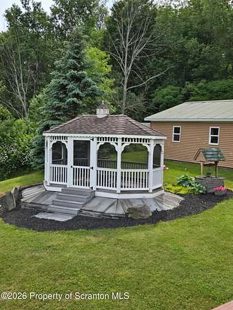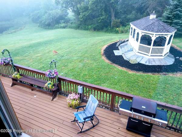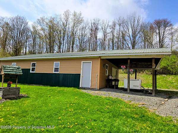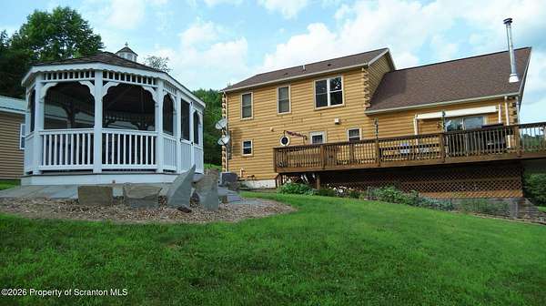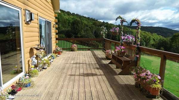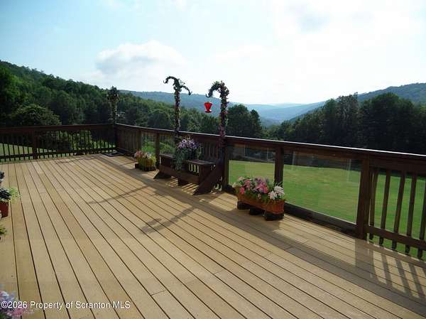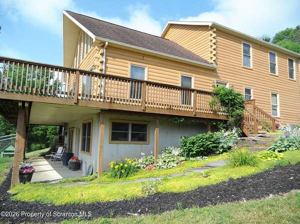 Are you looking for complete privacy, panoramic mountain views, abundant wildlife, and income-producing property? Look no further-this PROPERTY delivers it all!.Over 109 Acres of Mountain Views, Mountain Escape, Wildlife, and Income-Producing PropertySet on 109+ acres in beautiful NEPA, this rare synthetic log contemporary estate delivers an unmatched combination of seclusion, recreation, and opportunity. A true hunter's paradise or family retreat, the property features 3 ponds, abundant wildlife, multiple hunting stands, and a producing stone quarry offering ongoing income potential.Outdoor living is the highlight, with a massive wraparound deck and charming gazebo overlooking sweeping views of mountains, valleys, and untouched countryside. The property spans from State Route 706 all the way to Route 11, offering exceptional access and scale, and includes a diverse mix of approximately Percents are 20 open fields, 60 wooded terrain, and 20 natural spring-fed ponds and water features, with a stream running through the land.Inside, the home features a dramatic great room with cathedral ceilings, exposed beams, and propane fireplace, opening to a dining area and fully equipped kitchen with oak cabinetry, breakfast island, and sliding glass doors to the deck.The first floor includes a spacious primary suite with soaking tub, plus laundry and half bath. Upstairs offers two bedrooms, a full bath, and a versatile loft. The lower level includes a large family/rec room with propane and wood-burning stoves, a full bath, and walkout access.Additional features include central A/C, Generac generator, waterproofed foundation, and multiple outbuildings including a 24x40 detached garage with workshop, 14x24 carport, and storage building. The property also offers extensive road frontage along SR 706W Easy access to I-81, close to NY border, this exceptional property delivers seclusion, convenience, and rare income-producing opportunity.Schedule your private showing today!
