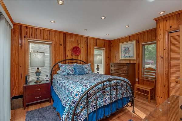 Breezy waterfront living never provided so much potential! Overlooking the sparkling spring-fed Miles Kale Lake in the quiet area of Fort McCoy, this property offers a total of three parcels that each feature roughly 100 ft. of shoreline and a combined 1.91 acres. All of the acreage is fenced, and 2 residences rest on two of the parcels, with the third lot being left in a more natural state as a lovely heavily wooded area. Move-in ready, both homes have been lovingly maintained and are move-in ready with full furnishing. Used currently as VRBO, there is ample potential to continue this usage without much fuss or to instead use this as a personal vacation compound or as year-round residence with a designated guest, in-law, or rental home. On the northern lot is the home named The Big Green House- offering a total of 2-bedrooms and 2-baths, the home was meticulously rebuilt and expanded with all new plumbing, electrical wiring, trusses, a standing seam metal roof, and is highly energy efficient. The interiors feature ample natural light, tall vaulted ceilings, beautiful tongue-and-groove wood work throughout, and lots of space to enjoy. The home features a large great room, as well as a large open kitchen that includes stainless steel appliances, abundant counter and cabinet space, center island with breakfast bar, and adjacent dining nook. Both bathrooms are immaculate, with recent updates and a clean aesthetic. A large screen-enclosed porch rests to the back of the home, providing a wonderful space to enjoy stunning views of the lake and a cozy area to catch some shade. The secondary residence, called The Brown Cottage, rests on the center-most lot. Offering 1-bedroom and 1-bath, this charming cottage features a large family room, a delightful kitchen with adjacent dining area, and a great screen-enclosed porch that overlooks the lake. This home shares the rustic aesthetic of the green home, with lots of tasteful wood-work done throughout the home. A laundry shed is also attached to the home for added ease. Both residences share a well and pump, however, an additional well and pump could be added by the future buyer if desired. A private boat ramp with a recently updated dock allows for easy enjoyment of the lake, opening up a variety of uses for those who enjoy spending time on their boat. Mile Kale Lake is a wonderful, natural Florida lake with a nice sand bottom and a few unique features that make it extra exciting- the lake has a gradual slope and is deeper than many other lakes in the area. The lake is great for boating on canoes, kayaks, jet skis, or even power boats with other boats rarely being seen on the lake to provide little to no disruption on most days. Many other lakes are also in the area, making this an ideal property for those looking to discover the many options Central Florida has to offer! If you're ready to take in pristine water-front views or are looking for an income producing opportunity, this property is a wonderful option to consider!