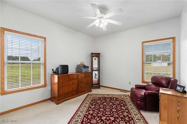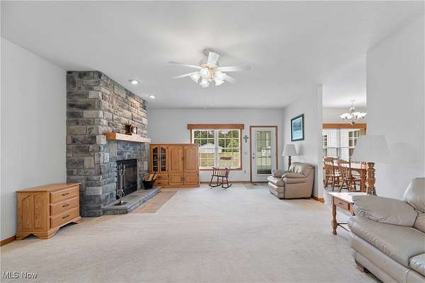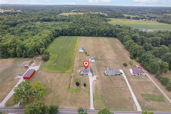 Welcome to 2265 Industry Road, Atwater-an impressive, sprawling ranch set on over 3.5 picturesque acres, designed to offer both comfort and functionality. This home includes privacy, a quiet lifestyle, close proximity to Kent, recreation at Nelson Ledges, boating/fishing at West Branch State Park, and within 10 minutes of Giant Eagle and 6 minutes of local restaurants. From the moment you arrive, the stone-accented exterior and inviting curb appeal set the tone. This property includes a 2-car attached garage, an expansive 4-car detached garage ideal for additional vehicles, storage, or workshop needs, and a custom-built pole barn built with a multitude invested for equestrian use. The barn features 2 horse stalls, electric, water, a tack room, and a sawdust room, making it an exceptional setup for horse enthusiasts or hobby farming. Step inside through the welcoming foyer and into the bright, airy living room. The heart of the home is the spacious kitchen, complete with recessed lighting, breakfast bar seating, tile backsplash, full appliance package, and an abundance of counter and cabinet space. The kitchen flows seamlessly into the large family room, highlighted by a stunning stone-front wood-burning fireplace and access to the covered rear porch overlooking the acreage-perfect for relaxing or entertaining. The private primary suite is a true retreat, featuring a tray ceiling, oversized walk-in closet, and a luxurious bathroom with dual sinks, a fully tiled walk-in shower, a separate shower, and ample space. The opposite wing offers two generously sized bedrooms w/easy access to a full bathroom. The full basement is ready to be finished, offering endless possibilities for recreation or additional living space. Bright, neutral, and move-in ready, this property combines peaceful country living w/modern amenities. With multiple garages, a custom horse barn, an opportunity for one-floor living and endless space to grow, this home is ready for its next owner!