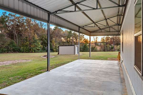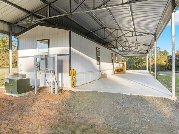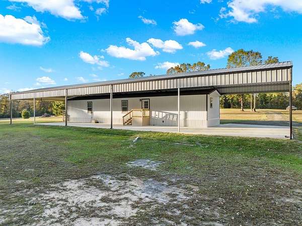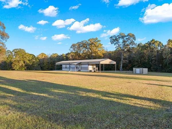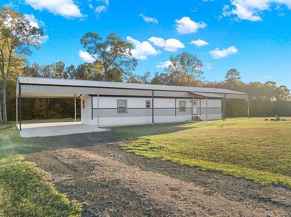Rare find: 20 gorgeous unrestricted acres with outstanding development potential -- just 2.2 miles from the Hwy 96 & Hwy 83 intersection in Pineland! Prime unrestricted land with endless possibilities: perfect for RV park, tiny home community, subdivision, multi-family, commercial venture, or private estate. Excellent road frontage, serene creek, & incredible lake proximity (8 min to San Augustine Park, 16 min to Mill Creek on Sam Rayburn, 24 min to Six Mile on Toledo Bend). Includes a like-new 2024 manufactured home in immaculate condition -- 3-bed, 2-bath split plan with sleek modern design, open living areas & large breakfast bar kitchen. Protected under a massive 125' x 35' metal cover that provides spacious covered carport & inviting covered porch on a concrete slab, plus insulated shed with well & bonus storage. Move-in-ready home + high-potential development land + unbeatable lake-area location. This rare, versatile & immediately usable property won't last -- call today!