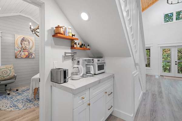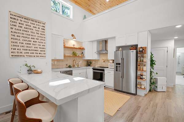 Step inside to find soaring vaulted ceilings, a cozy fireplace in the living room, and an open floor plan that brings the outdoors in. The kitchen is a dream with high-end appliances, custom cabinetry, and plenty of space for gathering. Enjoy the whole house water filtration system, water softener, and reverse osmosis in the kitchen pot arms for drinking water. Each bedroom opens onto its own private deck, inviting you to start or end your day surrounded by the quiet sounds of nature. The spa-like bathrooms offer a touch of indulgence, while the airy loft provides the perfect bonus space for guests or a home office.