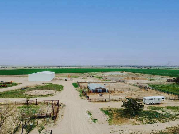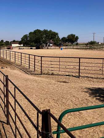 This exceptional 295± acre irrigated farm and feed yard spans two irrigated parcels. The property includes a four-bedroom, two-bath home with a wrap-around porch, mature landscaping, and a finished basement. Ideal for cattle and hay operations, the farm boasts an 800-head feedlot, ample horse improvements including a pipe roping arena, tack shed, irrigated grass trap, and extensive livestock infrastructure: grain bins, 120’ x 65’ hay shed built in 2023, calving barn, small platform scale, and 2,040± square foot shop. The feedlot features six pipe pens, an automatic water system, a hydraulic chute, cattle scales, and a semi-loadout with easy access from paved Road 24.