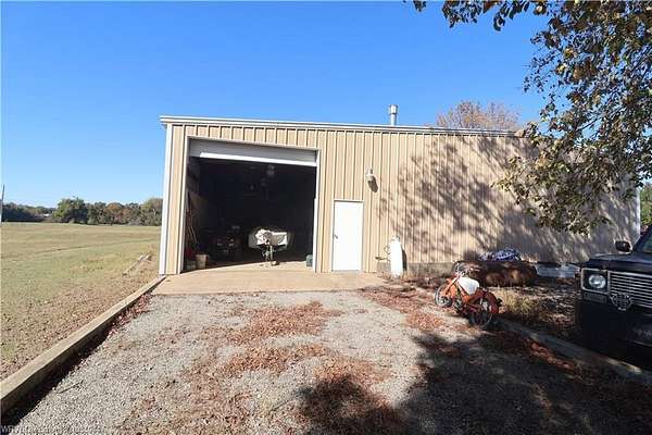 Charming Brick Home on 4 Acres with Shop, Pond & RV Storage - Rock Island, OK Discover peaceful country living just minutes from Fort Smith and Greenwood with this beautiful 3-bedroom, 2-bath brick home nestled on 4 scenic acres in Rock Island. Step inside to a warm and inviting living area featuring a cozy fireplace and a functional layout perfect for family living. The kitchen and dining spaces flow naturally. Outside, you'll find a detached garage and an impressive oversized shop that's ideal for work, hobbies, or business. The shop includes a spacious office, a half bath, and a loft area, with tall dual front garage doors and a massive pull-through bay in back - perfect for storing RVs, boats, or large equipment. Enjoy the tranquil pond, mature trees, and the privacy of your own acreage while still being conveniently close to town amenities, schools, and major highways. This property offers the perfect mix of comfort, functionality, and space - ideal for anyone looking for a home with room to live, work, and play.