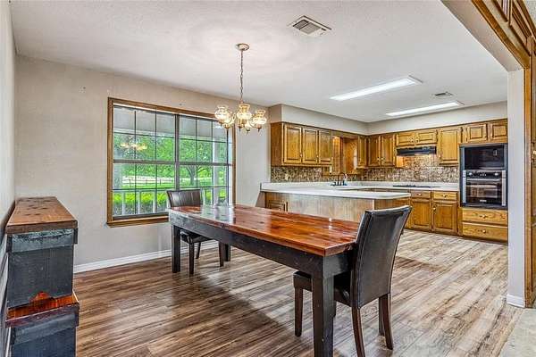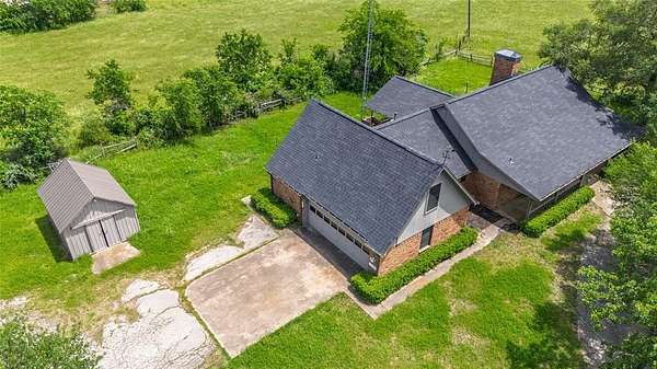 Welcome to your slice of country paradise! Nestled on 11.4 fully fenced acres, this charming 1980 brick ranch-style home offers the perfect blend of peaceful rural living with modern comforts. With approximately 1,763 sq ft of well-maintained space, this 3-bedroom, 2-bathroom residence features a thoughtful split-bedroom floor plan, perfect for both privacy and functionality. You'll immediately appreciate the spacious living area with a cozy gas log fireplace, ideal for relaxing evenings. The kitchen is well-appointed with a breakfast bar and ample cabinetry, flowing seamlessly into the dining area -- great for everyday meals or entertaining guests. Enjoy serene views out of every window, with trees galore surrounding the home and a circle driveway welcoming you to the property. The master suite boasts dual sinks, a jetted tub, a separate shower, and an attached office or flex space -- perfect for working from home or unwinding in your own private retreat. A large utility room adds to the convenience, and the attached 2-car garage provides secure parking and extra storage. Outside, the possibilities are endless. The property includes a barn, making it ideal for horses, cows, or other livestock. Whether you're looking to start a small homestead, garden, or simply enjoy the wide-open spaces, this property has the space and infrastructure to support your goals. This is true country living -- quiet, open, and full of opportunity, yet still close enough to town for everyday essentials. Don't miss your chance to own this beautiful piece of Texas countryside. Come experience the charm and potential of this one-of-a-kind ranch property!