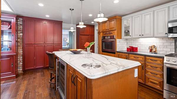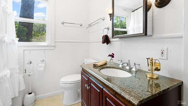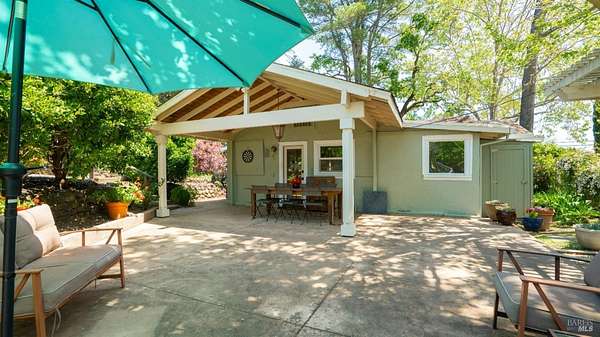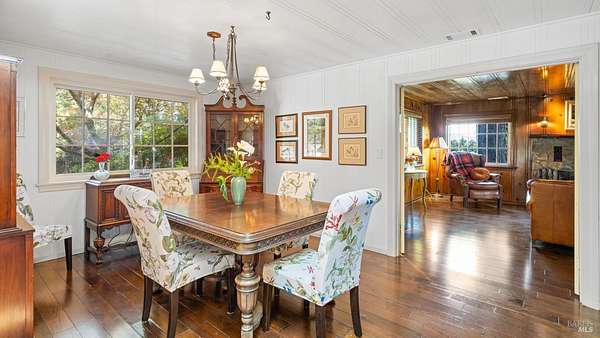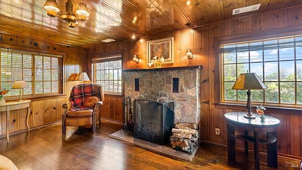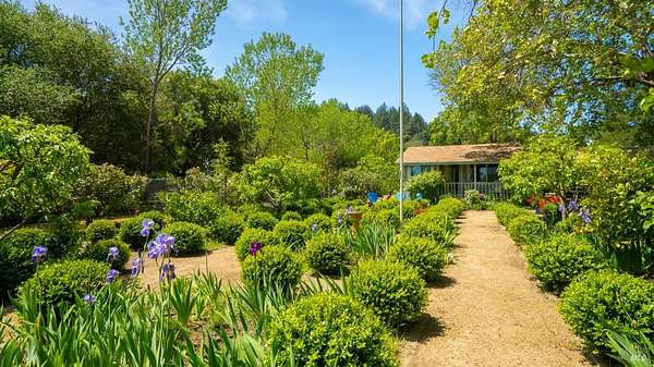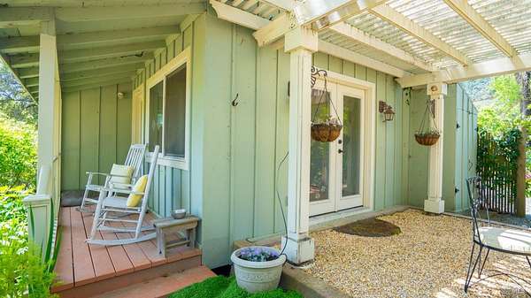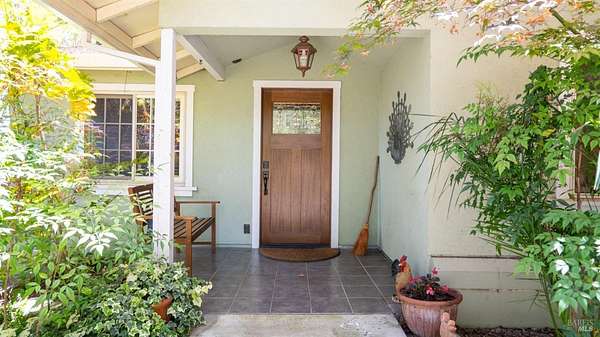Charming 1920s Home with Modern Upgrades on 3.2 Acres. Experience timeless elegance in this beautifully updated 1920s home, set behind a private iron gate on approx. 3.2 acres. The chef's kitchen features a large island, double ovens, and wine fridgeideal for entertaining. Enjoy cozy living spaces with a rustic fireplace, built-ins, and a Murphy bed in the den. The spacious primary suite offers garden views and a walk-in closet. Modern comforts include updated windows and owned solar. A detached studio with its own porch is perfect for a home office or creative space. Outside, relax in the landscaped English garden with a peaceful fountain. Additional outbuildings add to the property's charmall just minutes from downtown Healdsburg and world-class wineries.