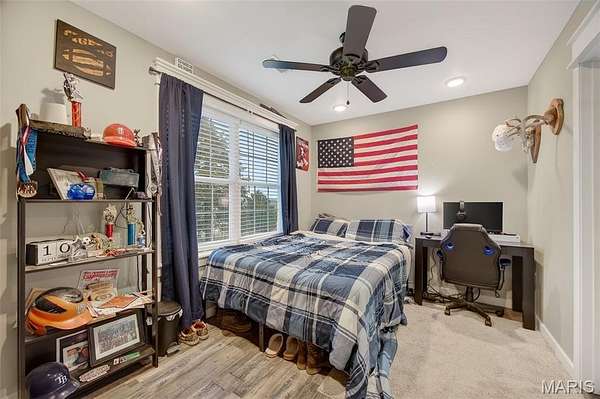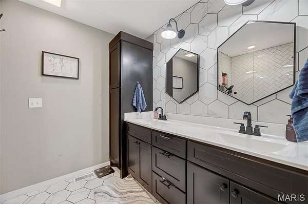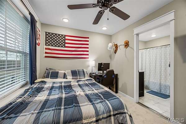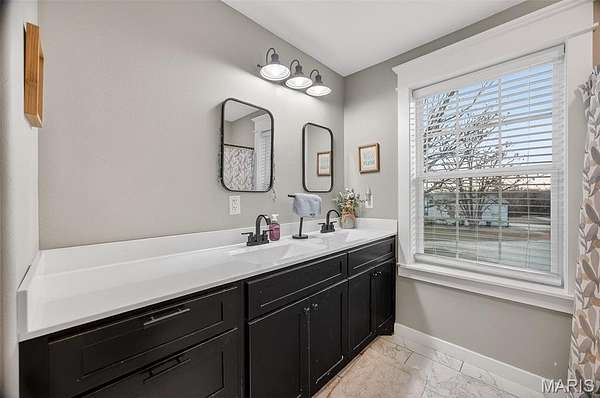 Upstairs includes a private secondary suite along with additional bedrooms and a shared bath featuring dual vanities, offering comfortable space for family or guests.
